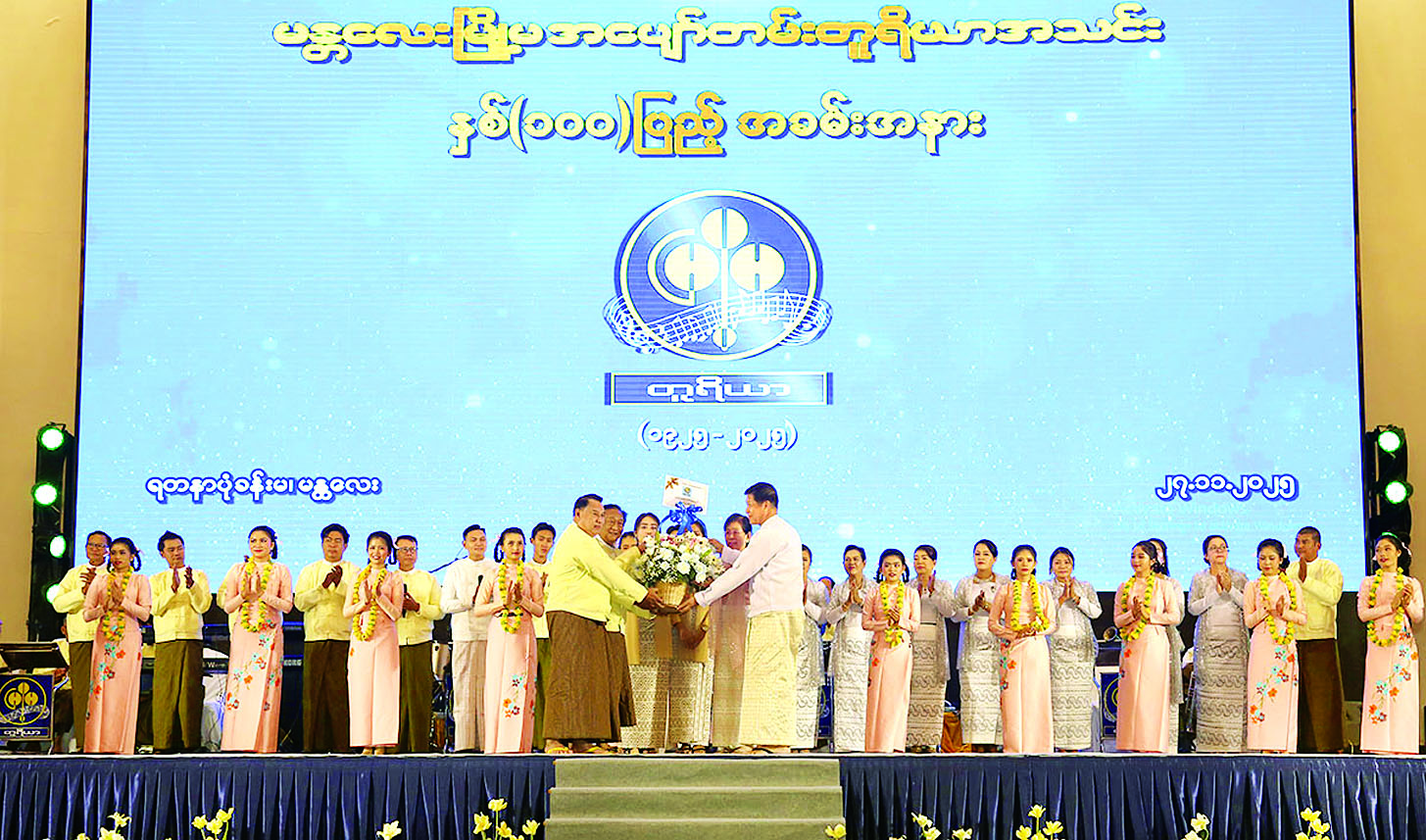 ယင်းနောက် တိုင်းဒေသကြီးဝန်ကြီးချုပ်က ဂုဏ်ပြုအဖွင့်အမှာစကားပြောကြားပြီး မန္တလေးမြို့မ အပျော်တမ်းတူရိယာအသင်းကြီး၏ဥက္ကဋ္ဌက မြို့မအသင်းကြီးအကြောင်းကို ရှင်းလင်းတင်ပြသည်။ ထို့နောက် တိုင်းဒေသကြီးဝန်ကြီးချုပ်၊ တိုင်းမှူးနှင့် တာဝန်ရှိသူများက မန္တလေးမြို့မ အပျော်တမ်းတူရိယာအသင်း ကြီး၏ နှစ်(၁၀၀)ပြည့် အထိမ်းအမှတ် သီချင်းဆိုပြိုင်ပွဲတွင် ဆုရရှိသူများအား ဆုများအသီးသီးပေးအပ်ချီးမြှင့်ကြသည်။