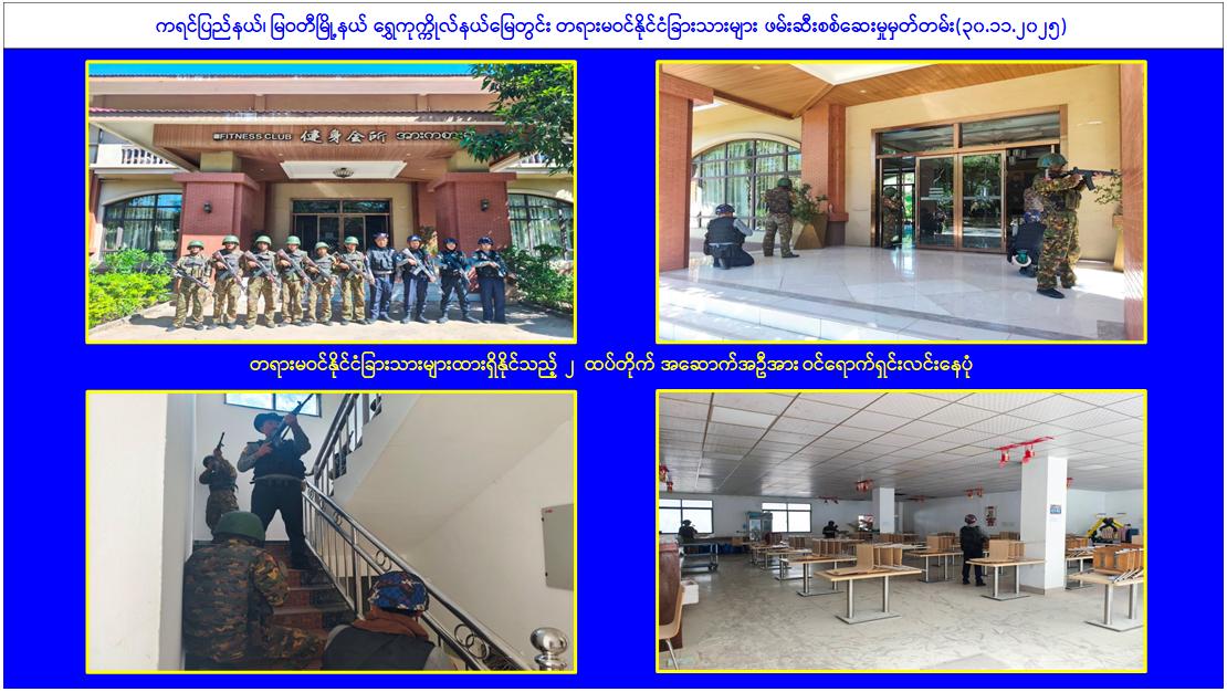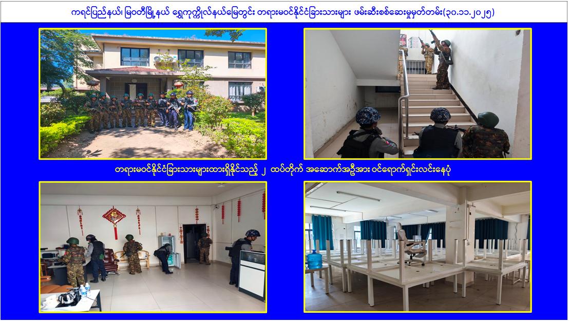 မြန်မာနိုင်ငံအစိုးရအနေဖြင့် အွန်လိုင်းလိမ်လည်မှုများနှင့် အွန်လိုင်းလောင်းကစားမှုများ အများဆုံးအခြေချလုပ်ကိုင်လျက်ရှိကြသည့် ရွှေကုက္ကိုလ်နယ်မြေနှင့် KK Park နယ်မြေများ၌ လုံခြုံရေးတပ်ဖွဲ့ဝင်များ၊ အုပ်ချုပ်ရေးအဖွဲ့အစည်းများနှင့် ဒေသတွင်းတာဝန်ရှိသူများအပါအဝင် အဖွဲ့စုံပါဝင်သည့် ပူးပေါင်းအဖွဲ့ဖြင့် တရားမဝင်အဆောက်အအုံများအတွင်း ဝင်ရောက်ရှင်းလင်းခြင်း၊ အွန်လိုင်းလိမ်လည်လောင်းကစားမှု လုပ်ငန်းစဉ်များတွင် အသုံးပြုခဲ့သည့် သိမ်းဆည်းရမိပစ္စည်းများနှင့် တရားမဝင်အဆောက်အအုံများအား စနစ်တကျဖြိုချဖျက်ဆီးခြင်းများ ဆက်လက်ဆောင်ရွက်လျက်ရှိသည်။