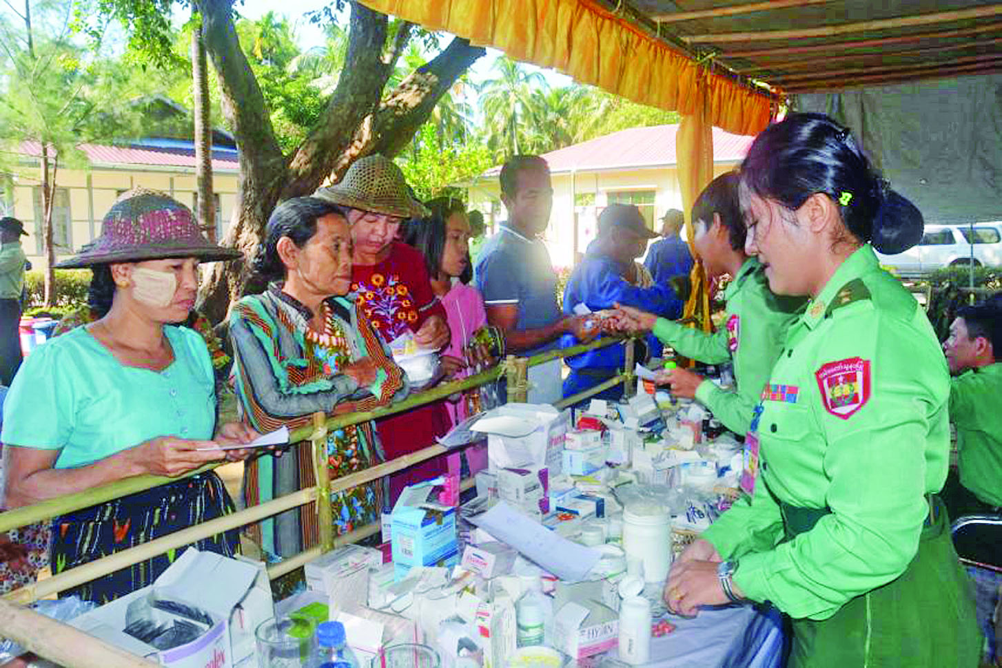 ထိုသို့ဆောင်ရွက်ပေးရာတွင် ဆေးကုသမှုဆိုင်ရာရောဂါ ၉၈ ဦး၊ ခွဲစိတ်ရောဂါ ၄၈ ဦး၊ သားဖွားမီးယပ်ရောဂါ ၁၂ ဦး၊ ကလေး ရောဂါ ၃၁ ဦး၊ အရိုးရောဂါ ၇၅ ဦး၊ နား၊ နှာခေါင်း၊ လည်ချောင်းရောဂါ ၃၀၊ မျက်စိရောဂါ ၉၇ ဦးနှင့် သွားနှင့်ခံတွင်းရောဂါ ၅၇ ဦး၊ စုစုပေါင်း ၄၄၈ ဦးတို့ကိုလိုအပ်သည့် ဆေးဝါးကုသမှုများဆောင်ရွက်ပေးသည်။ ၎င်းတို့အနက် အထွေထွေခွဲစိတ်လူနာ ငါးဦး၊ မျက်စိခွဲစိတ်လူနာ ကိုးဦး၊ သွားနုတ်/သွားဖာ ၄၈ ဦး၊ ဓာတ်မှန်ရိုက်လူနာ သုံးဦး၊ အာထရာဆောင်း စက်ဖြင့် စမ်းသပ်စစ်ဆေးလူနာ ၆၁ ဦး၊ ECG စက်ဖြင့် နှလုံး စမ်းသပ်လူနာ ၄၉ ဦးနှင့် ဓာတ်ခွဲစမ်းသပ်လူနာ ၂၉ ဦးတို့ကို ရောဂါရှာဖွေစမ်းသပ်ကုသပေးခြင်းများ ဆောင်ရွက်ပေးသည်။