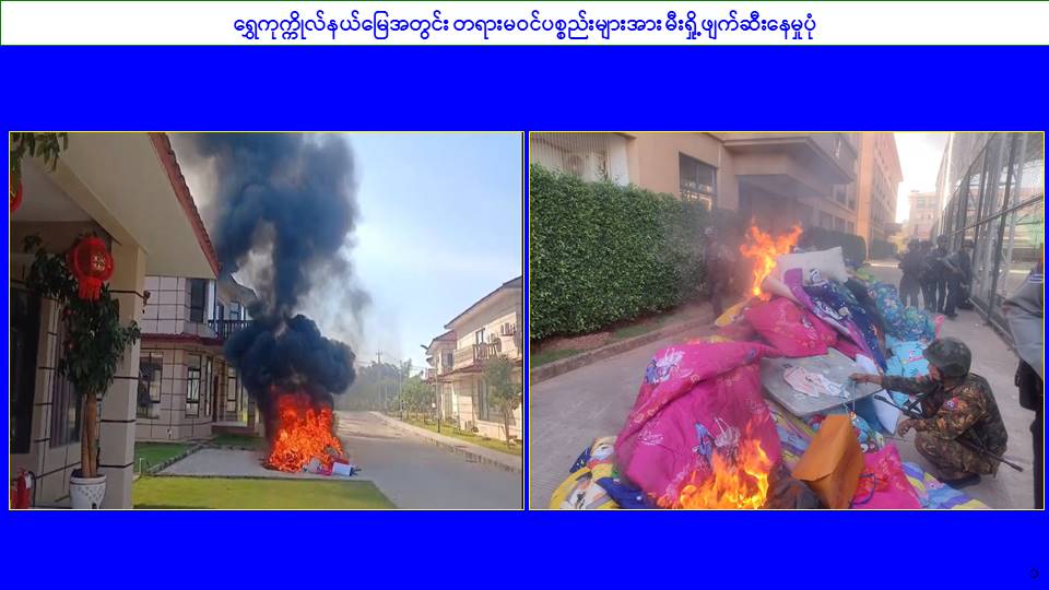 မြန်မာနိုင်ငံအစိုးရအနေဖြင့် အွန်လိုင်းလိမ်လည်မှုများနှင့် အွန်လိုင်းလောင်းကစားမှုများ အများဆုံးအခြေချလုပ်ကိုင်လျက်ရှိကြသည့် ရွှေကုက္ကိုလ်နယ်မြေနှင့် KK Park နယ်မြေများ၌ လုံခြုံရေးတပ်ဖွဲ့ဝင်များ၊ အုပ်ချုပ်ရေးအဖွဲ့အစည်းများနှင့် ဒေသတွင်းတာဝန်ရှိသူများအပါအဝင် အဖွဲ့စုံပါဝင်သည့် ပူးပေါင်းအဖွဲ့ဖြင့် တရားမဝင်အဆောက်အအုံများအတွင်း ဝင်ရောက်ရှင်းလင်းခြင်း၊ အွန်လိုင်းလိမ်လည်လောင်းကစားမှု လုပ်ငန်းစဉ်များတွင် အသုံးပြုခဲ့သည့် သိမ်းဆည်းရမိပစ္စည်းများနှင့် တရားမဝင် အဆောက်အအုံများအား စနစ်တကျဖြိုချဖျက်ဆီးခြင်းများ ဆက်လက်ဆောင်ရွက်လျက်ရှိသည်။