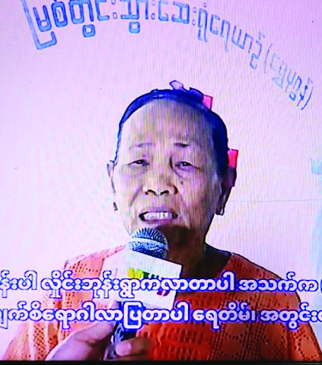၂။ ကျွန်မ နာမည်က ဒေါ်သက်သက်မွန်ဖြစ်ပါတယ်။ ကျွန်မကတော့ လိပ်ချောင်းကျေးရွာကနေ လာတာပါ။ ဒူးနာလို့ လာပြတာပါ၊ ထိုင်တာ ထတာ မကောင်းဘူး၊ အဲဒီလိုနာကျင်တဲ့ဒဏ်ကို ခံစားရလို့ လာပြတာ၊ ဒီဆေးကုသတဲ့အဖွဲ့တွေ လာတော့ ပျော်ပါတယ်။ ဘာဖြစ်လို့လဲဆိုတော့ ပြဖူးတဲ့ လူတွေကလည်း ပြောတယ်၊ တော်တော်လေးကို ကောင်းတယ်တဲ့။ ဒူးနာတဲ့အစ်မဆိုလည်း အဲဒီလိုပဲလေ လာပြတာကောင်းတယ်လို့ ပြောတယ်။ ပျောက်လည်း ပျောက်တယ်လို့ ပြောတယ်။ အဲတာကြောင့်မို့ လာပြဖြစ်တာ၊ ပိုပြီးတော့ တတ်ကျွမ်းတယ်လို့ထင်တယ်။ ပြီးတော့ ဆေးကုသတဲ့နေရာမှာလည်း သဘောလည်းကောင်းတယ်။ အဲဒီအတွက်လည်း ကျေးဇူးတင်တယ်။ ပြီးတော့ ပြရတဲ့နေရာမှာလည်း အဆင်ပြေပါတယ်၊ တော်တော်လေးကို အဆင်ပြေတယ်။ လာပြီးတော့ ဆေးကုသပေးတဲ့အတွက် အလွန်ကျေးဇူးတင်တယ်။ နောက်လူတွေလည်း ကျွန်မတို့လိုပဲ ကျေးဇူးတင်မယ်၊ ပျော်ရွှင်မယ်လို့ ထင်ပါတယ်။ နောက်နေ့တွေလည်း လာပြမယ့်သူတွေ အများကြီးရှိပါသေးတယ်။