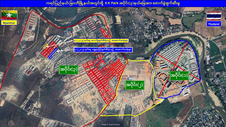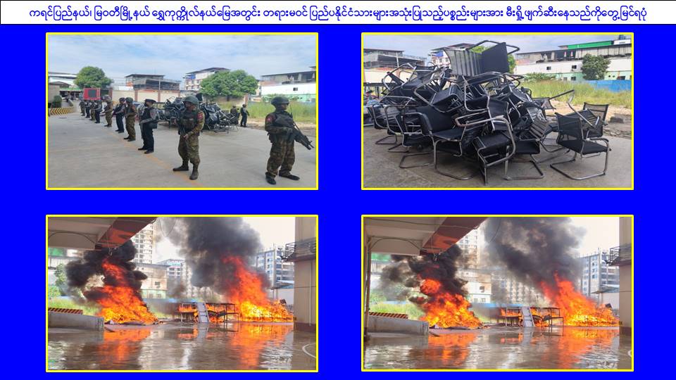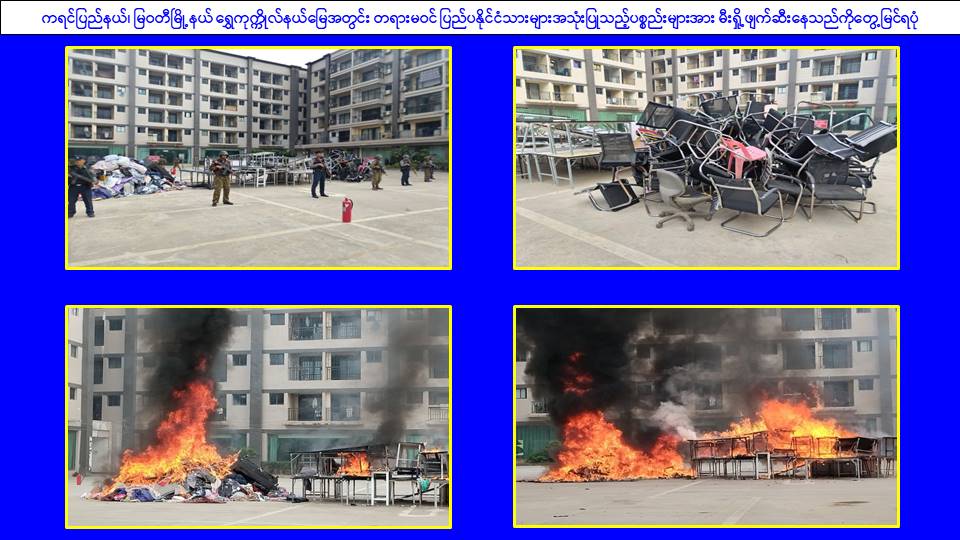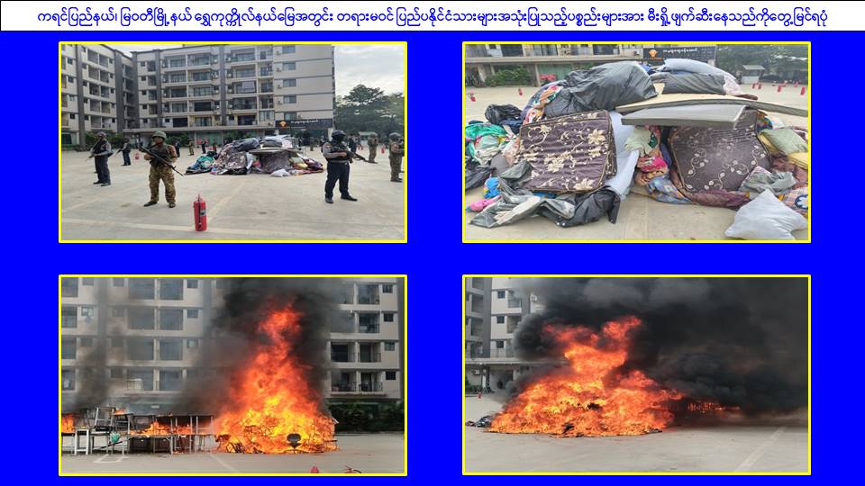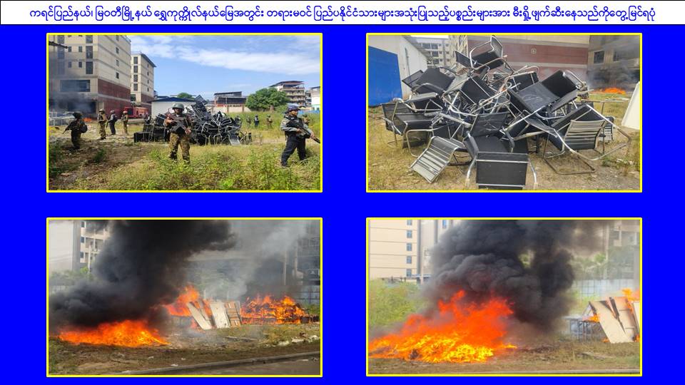 ၎င်းအပြင် မြဝတီမြို့နယ်အတွင်းရှိ KK Park နယ်မြေနှင့် ရွှေကုက္ကိုလ်နယ်မြေတို့၌ အွန်လိုင်းလိမ်လည်လောင်းကစားမှုကျူးလွန်ရာတွင် အသုံးပြုသည့်ပစ္စည်းများအား ထပ်မံ၍ အသုံးပြုနိုင်ခြင်းမရှိစေရန်အတွက် ယနေ့တွင်လည်း စနစ်တကျမီးရှို့ဖျက်ဆီးခဲ့ကြောင်း သိရှိရသည်။