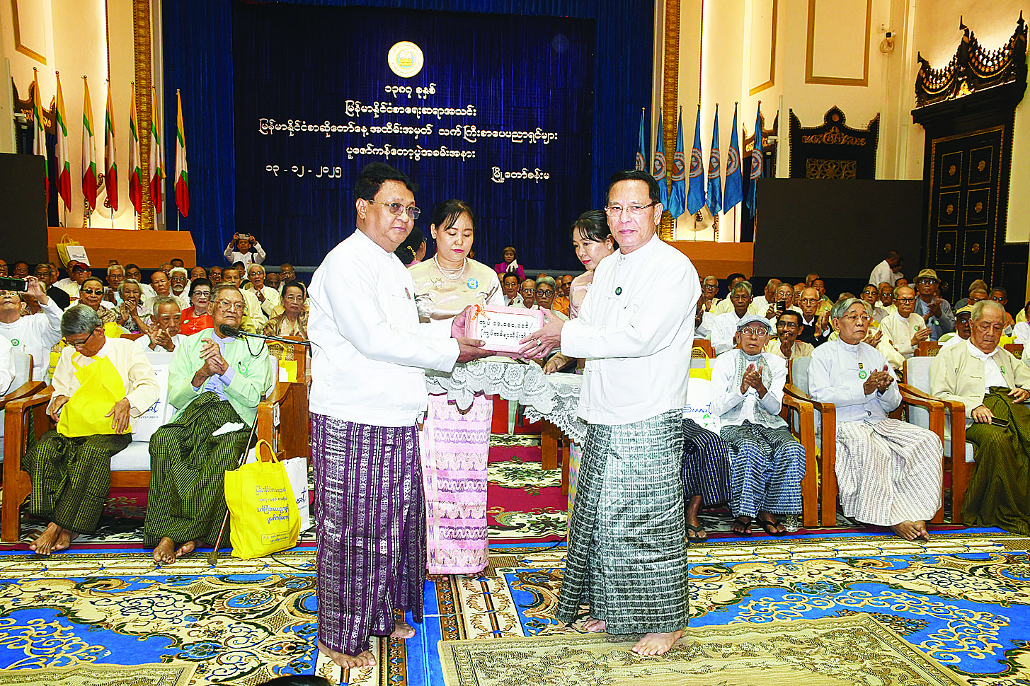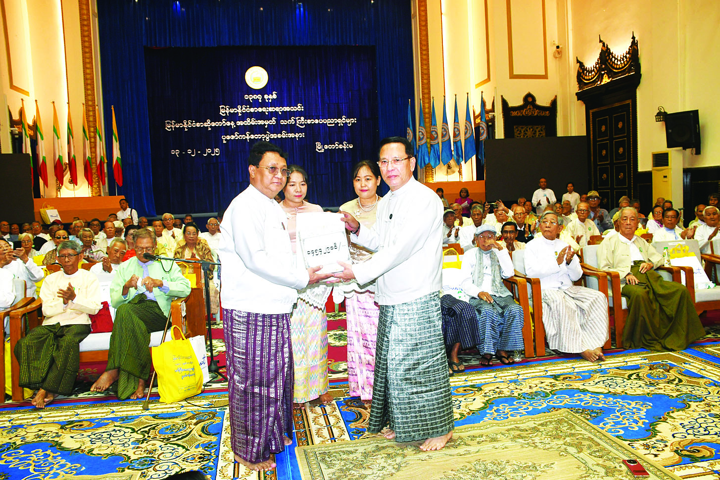 အခမ်းအနားတွင် နိုင်ငံတော်ယာယီသမ္မတ နိုင်ငံတော်လုံခြုံရေးနှင့်အေးချမ်းသာယာရေးကော်မရှင်ဥက္ကဋ္ဌ တပ်မတော်ကာကွယ်ရေးဦးစီးချုပ် ဗိုလ်ချုပ်မှူးကြီး မင်းအောင်လှိုင်နှင့် ဇနီး ဒေါ်ကြူကြူလှတို့က လှူဒါန်းသည့် ငွေကျပ် ၁၄၅ သိန်းကျော်တန်ဖိုးရှိ အင်္ကျီ၊ ပုဆိုး၊ လက်ဆွဲအိတ်၊ ခြုံပဝါနှင့် ပါတိတ်လုံချည်တို့ကို ပြည်ထောင်စုဝန်ကြီး ဦးမောင်မောင်အုန်းက ပေးအပ်လှူဒါန်းရာ မြန်မာနိုင်ငံ စာရေးဆရာအသင်းဥက္ကဋ္ဌ အလင်္ကာကျော်စွာ ဦးအုန်းမောင် (မြင်းမူ မောင်နိုင်မိုး) က လက်ခံရယူသည်။