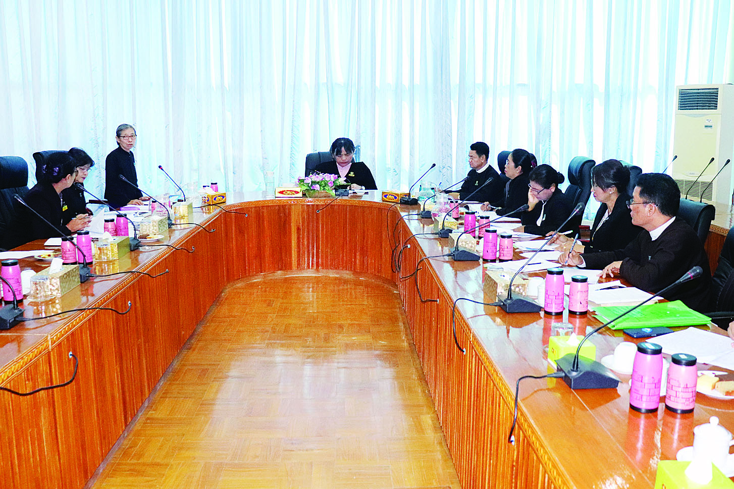 ရှေ့နေများအက်ဥပဒေကို ပြင်ဆင်သည့် ဥပဒေ (မူကြမ်း) နှင့် စပ်လျဉ်းသည့် အပြီးသတ်ညှိနှိုင်းအစည်းအဝေးကို ယနေ့နံနက်ပိုင်းတွင် နေပြည်တော်ရှိ ဥပဒေရေးရာဝန်ကြီးဌာန အစည်းအဝေးခန်းမ၌ ကျင်းပရာ ဥပဒေရေးရာဝန်ကြီးဌာန ပြည်ထောင်စုဝန်ကြီးနှင့် ပြည်ထောင်စုရှေ့နေချုပ် ဒေါက်တာ သီတာဦး၊ ဒုတိယဝန်ကြီးနှင့် ဒုတိယရှေ့နေချုပ် ဒေါက်တာထိန်လင်းဦး၊ ပြည်ထောင်စုတရားလွှတ်တော်ချုပ် တရားသူကြီး ဒေါ်ခင်မေရီ၊ ဥပဒေမူကြမ်းစိစစ်ရေးဦးစီးဌာန ညွှန်ကြားရေးမှူးချုပ်၊ ပြည်ထောင်စုတရားလွှတ်တော်ချုပ်ရုံး ညွှန်ကြားရေးမှူးချုပ်နှင့် တာဝန်ရှိသူများ တက်ရောက်ကြသည်။