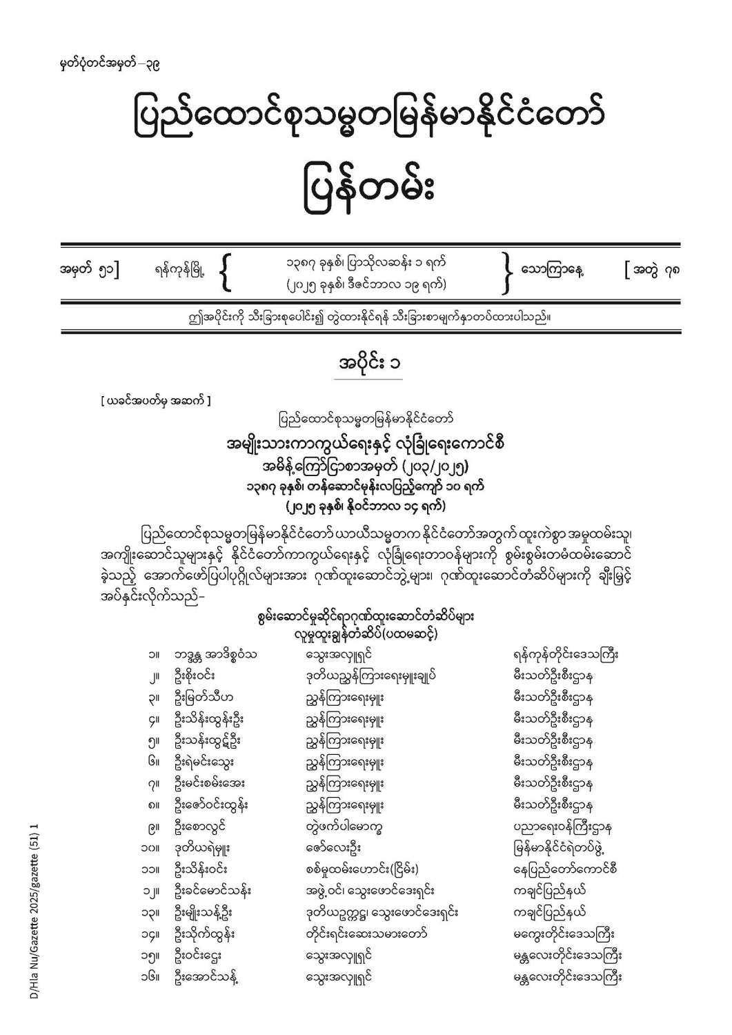 ပြည်ထောင်စုသမ္မတမြန်မာနိုင်ငံတော် ပြန်တမ်း အတွဲ (၇၈) အမှတ် (၅၁) အပိုင်း (၁)