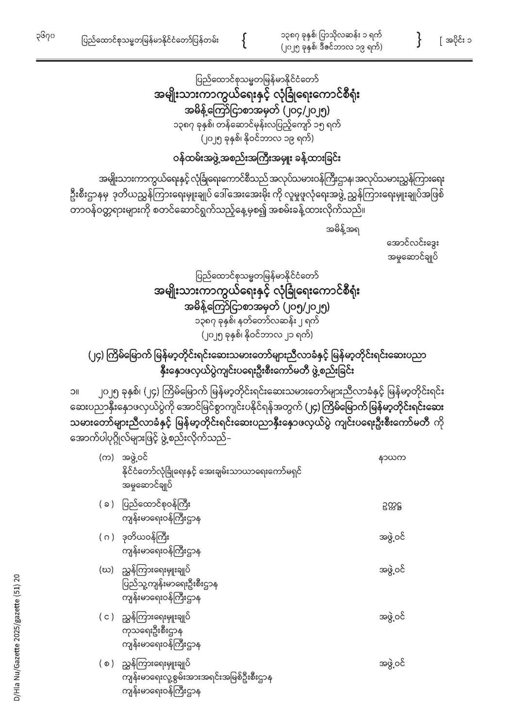 ဝန်ကြီးဌာန ကြေညာချက်များ