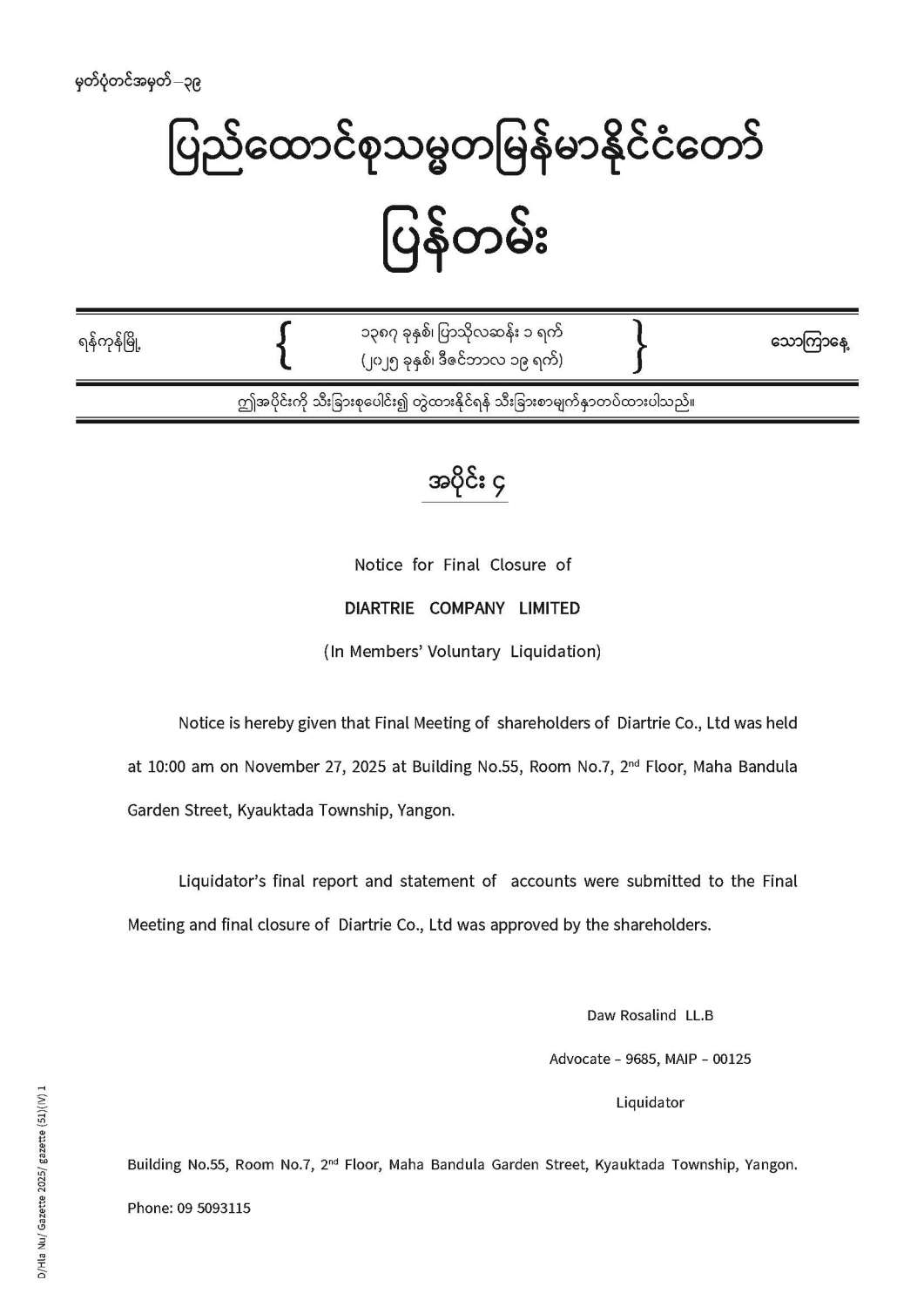 ပြည်ထောင်စုသမ္မတမြန်မာနိုင်ငံတော် ပြန်တမ်း အတွဲ (၇၈) အမှတ် (၅၁) အပိုင်း (၄)