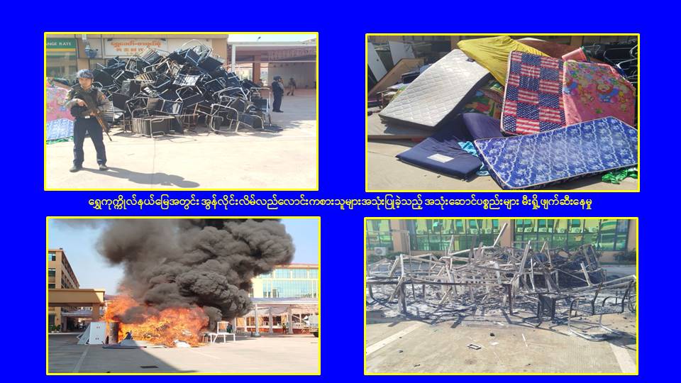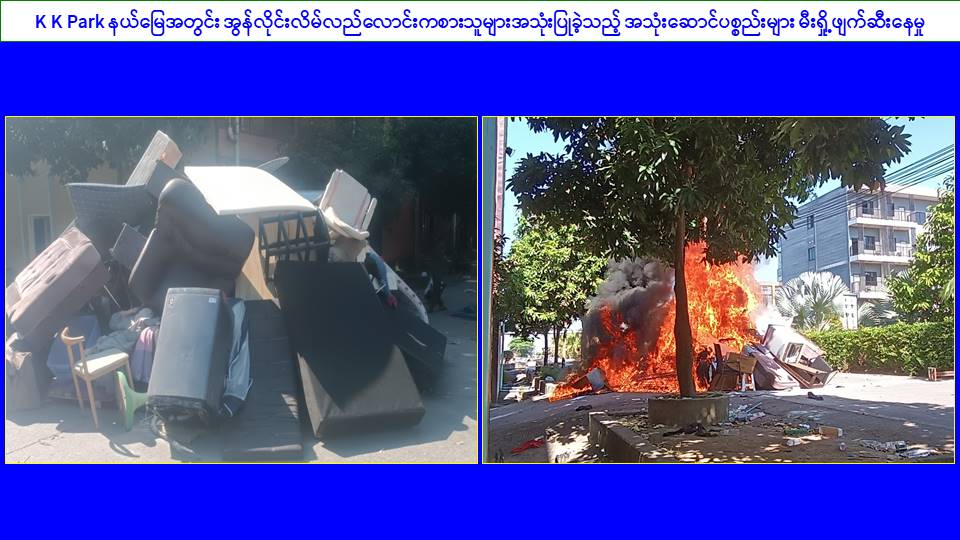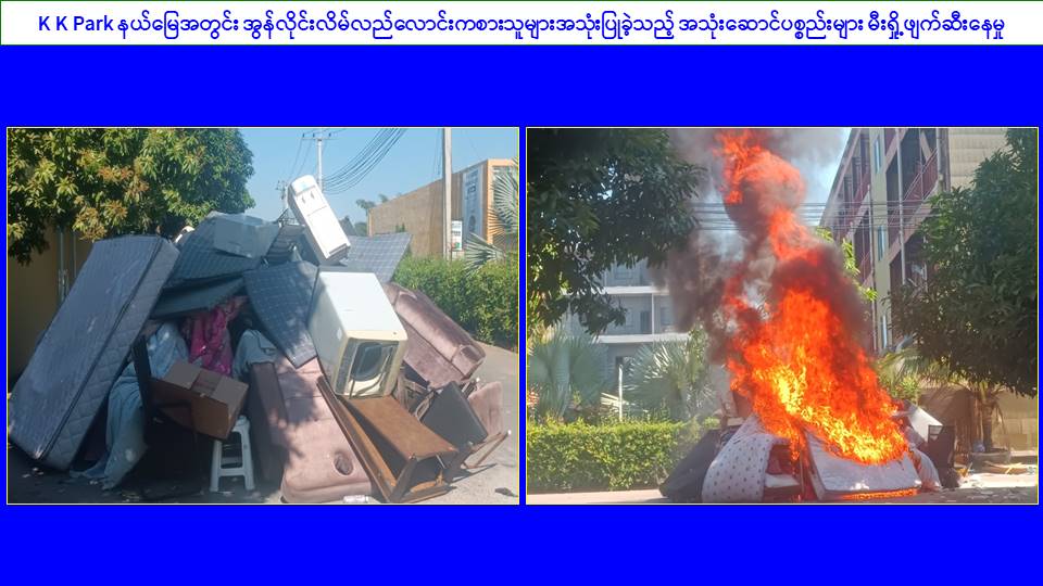 KK Park နယ်မြေ၊ ရွှေကုက္ကိုလ်နယ်မြေအတွင်းရှိ အွန်လိုင်းလိမ်လည်လောင်းကစားမှုကျူးလွန်ရာတွင် အသုံးပြုသည့်ပစ္စည်းများအား မီးရှို့ဖျက်ဆီး၊ မြဝတီမြို့အတွင်း တရားမဝင်ပြည်ပနိုင်ငံသားများနှင့် တရားမဝင်ကုန်ပစ္စည်းများ ဖမ်းဆီးရမိ