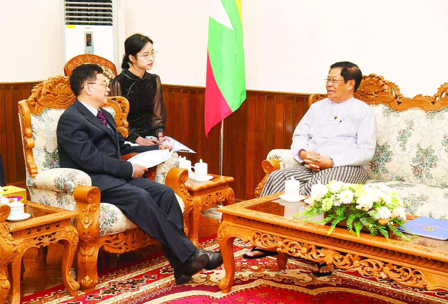 နိုင်ငံခြားရေးဝန်ကြီးဌာန ပြည်ထောင်စုဝန်ကြီး ဦးသန်းဆွေသည် တရုတ်နိုင်ငံခြားရေးဝန်ကြီးဌာန အာရှရေးရာအထူးကိုယ်စားလှယ် မစ္စတာတိန့်ရှီးကျွင်းအား ယနေ့ မွန်းလွဲ ၂ နာရီခွဲတွင် နေပြည်တော် ရှိ နိုင်ငံခြားရေးဝန်ကြီးဌာန၌ လက်ခံတွေ့ဆုံသည်။