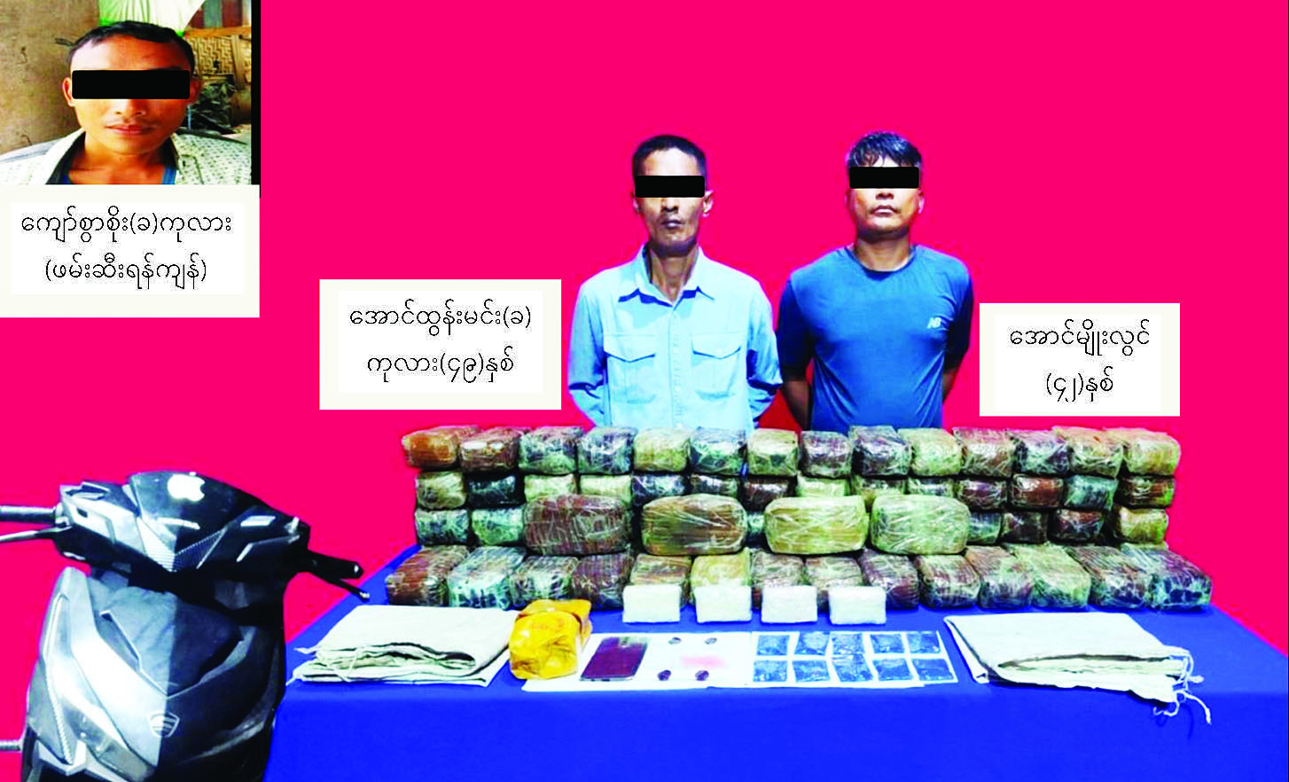 ကွင်းဆက် ဖော်ထုတ်ချက်အရ ဖမ်းဆီးရမိ စိတ်ကြွရူးသွပ်ဆေးပြားများ သယ်ဆောင်ခိုင်းသူ မြိတ်မြို့ မြိတ်တောင်ရပ်ကွက်နေ အောင်မျိုးလွင်(၄၂) နှစ်ကို ဒီဇင် ဘာ ၃၁ ရက် ည ၁၁ နာရီခွဲတွင် ၎င်း၏နေအိမ်၌ ထပ်မံဖမ်းဆီးရမိခဲ့သည်။