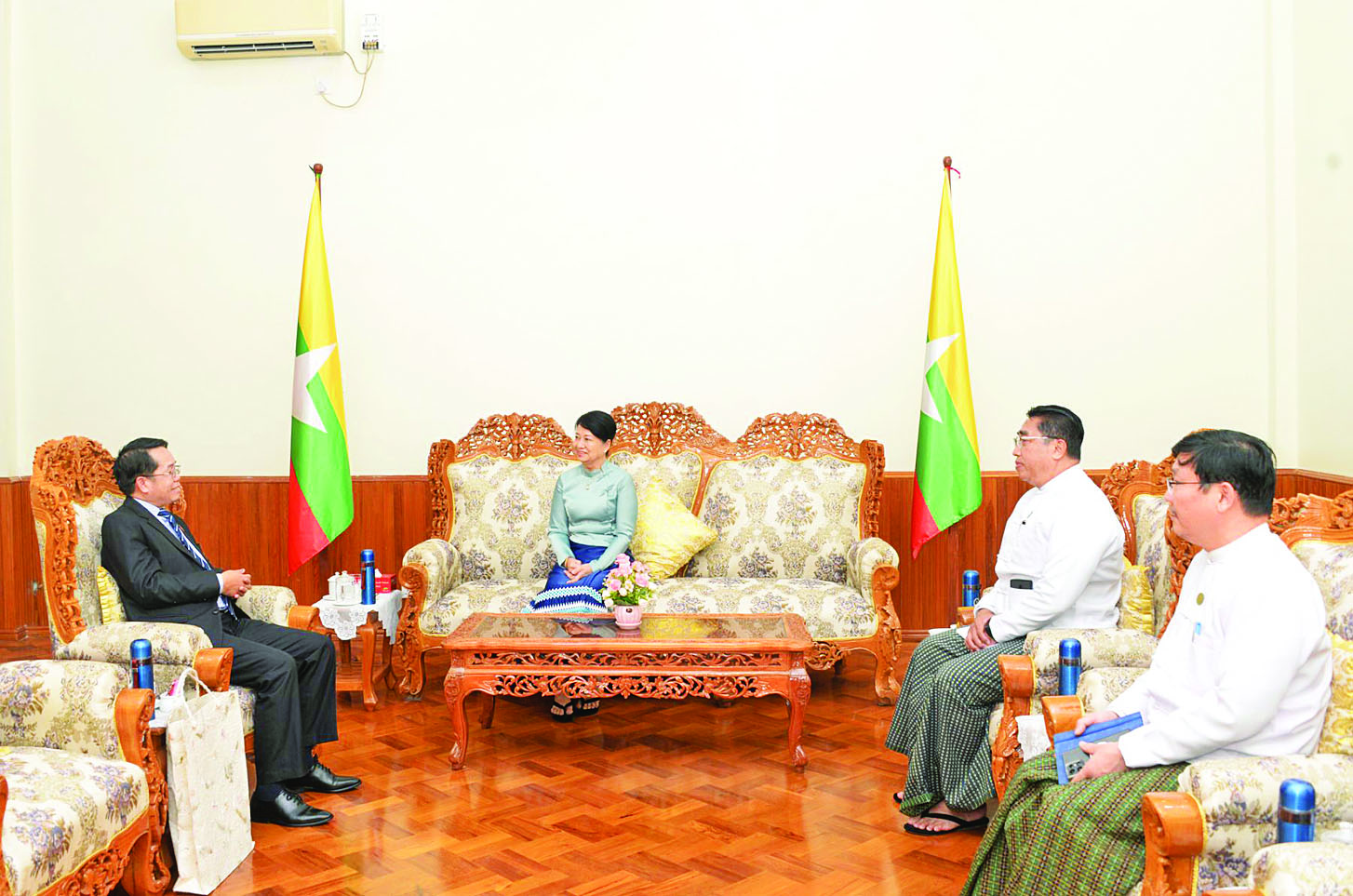 ပညာရေးဝန်ကြီးဌာန ပြည်ထောင်စုဝန်ကြီး ဒေါက်တာ ချောချောစိန်သည် မြန်မာနိုင်ငံဆိုင်ရာ လာအိုပြည်သူ့ဒီမိုကရက်တစ်သမ္မတနိုင်ငံ သံအမတ်ကြီး H.E. Mr. Bounphieng CHANTHAVONG အား ယနေ့မွန်းလွဲပိုင်းတွင် နေပြည်တော်ပညာရေးဝန်ကြီးဌာန ရုံးအမှတ် (၁၃) ရှိ ဧည့်ခန်းမ၌ လက်ခံတွေ့ဆုံသည်။
