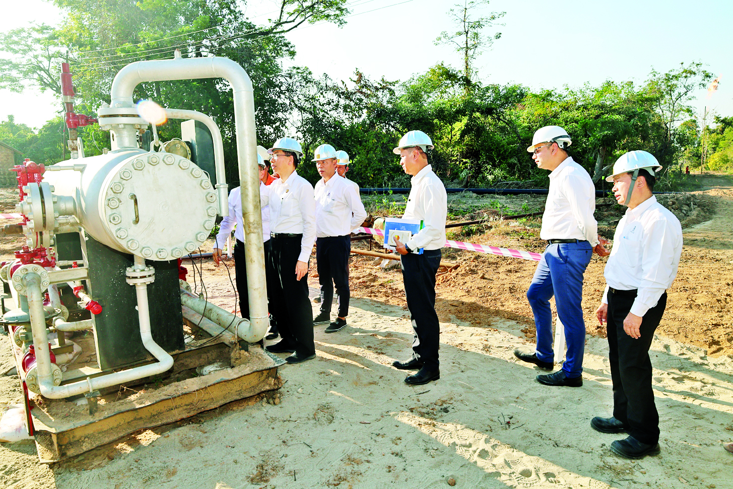 စွမ်းအင်ဝန်ကြီးဌာန ပြည်ထောင်စုဝန်ကြီး ဦးကိုကိုလွင်သည် ယနေ့တွင် ဌာနဆိုင်ရာတာဝန်ရှိသူများနှင့်အတူ ပဲခူးတိုင်းဒေသကြီး ပြည်ရေနံမြေသို့ သွားရောက်၍ သုတေသနပြုလုပ်ကာ သဘာဝဓာတ်ငွေ့စမ်းသပ်ထုတ်လုပ်နေမှုကို ကြည့်ရှုအားပေးသည်။