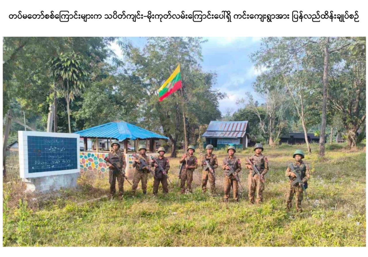 တပ်မတော်စစ်ကြောင်းများက မိုးကုတ် - သပိတ်ကျင်းလမ်းကြောင်းပေါ်ရှိ အကြမ်းဖက်သောင်းကျန်းသူများ ယာယီစိုးမိုးထားသည့် အုန်ဒန်ကျေးရွာ၊ ကင်းကျေးရွာနှင့် ရန်သူ့စခန်းတစ်ခုတို့အား ဆက်လက်သိမ်းပိုက်ရရှိ