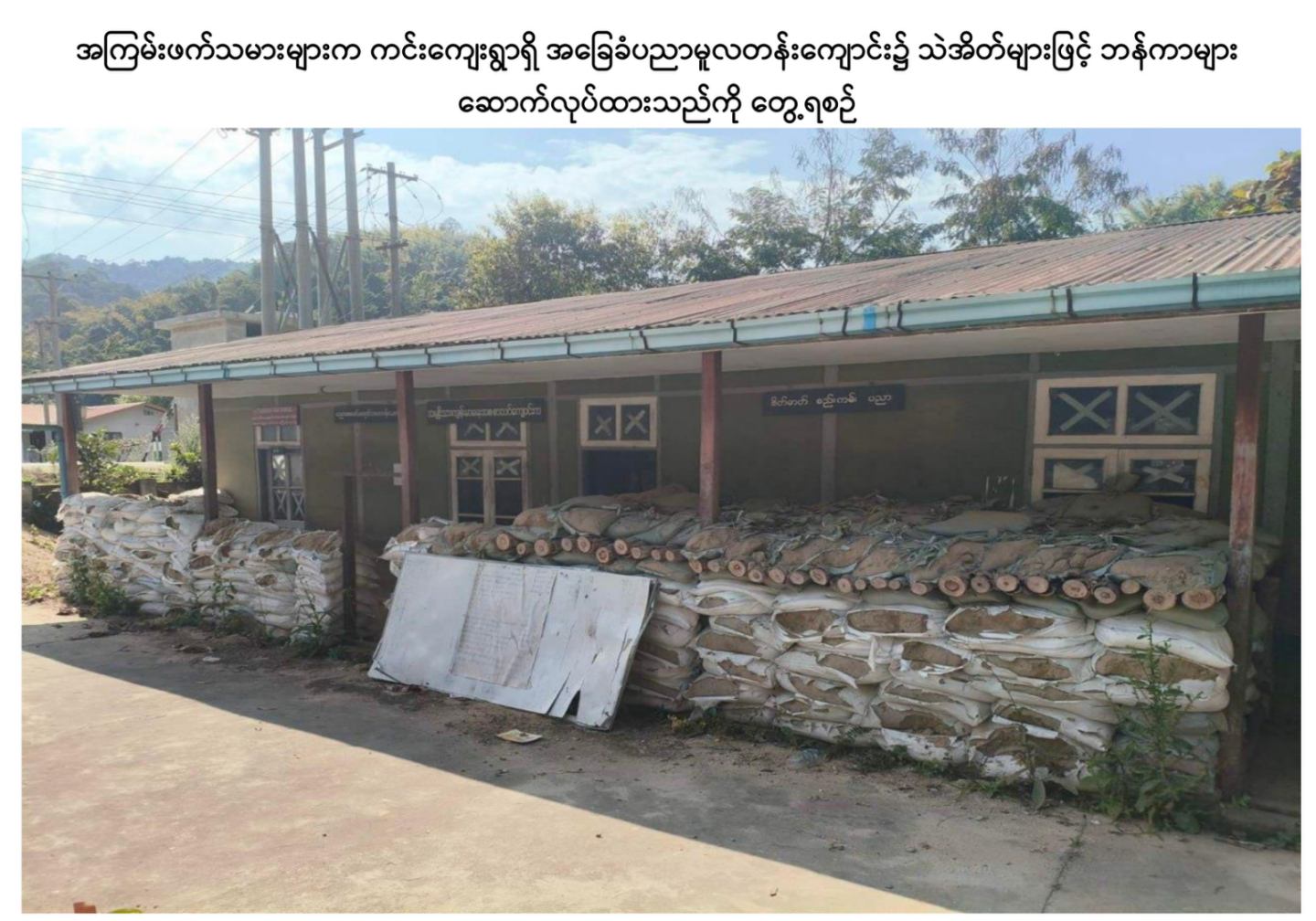 အကြမ်းဖက်သောင်းကျန်းသူများအနေဖြင့် အဆိုပါကျေးရွာများအား ယာယီစိုးမိုးထားစဉ် ကျေးရွာရှိ ဘုန်းတော်ကြီးကျောင်း၊ စာသင်ကျောင်းနှင့် လူနေအဆောက်အအုံများနှင့် ကျေးရွာအနီးရှိ တံတားနေရာတို့တွင် ဘန်ကာများပြုလုပ်၍ အခိုင်အမာခံစစ်စခန်းတည်ဆောက်ခြင်း၊ ယာယီဂိတ်စခန်းဖွင့်လှစ်၍ ဆက်ကြေးကောက်ခံခြင်းများ ပြုလုပ်ခဲ့ကြောင်းကို တွေ့ရှိရသည်။