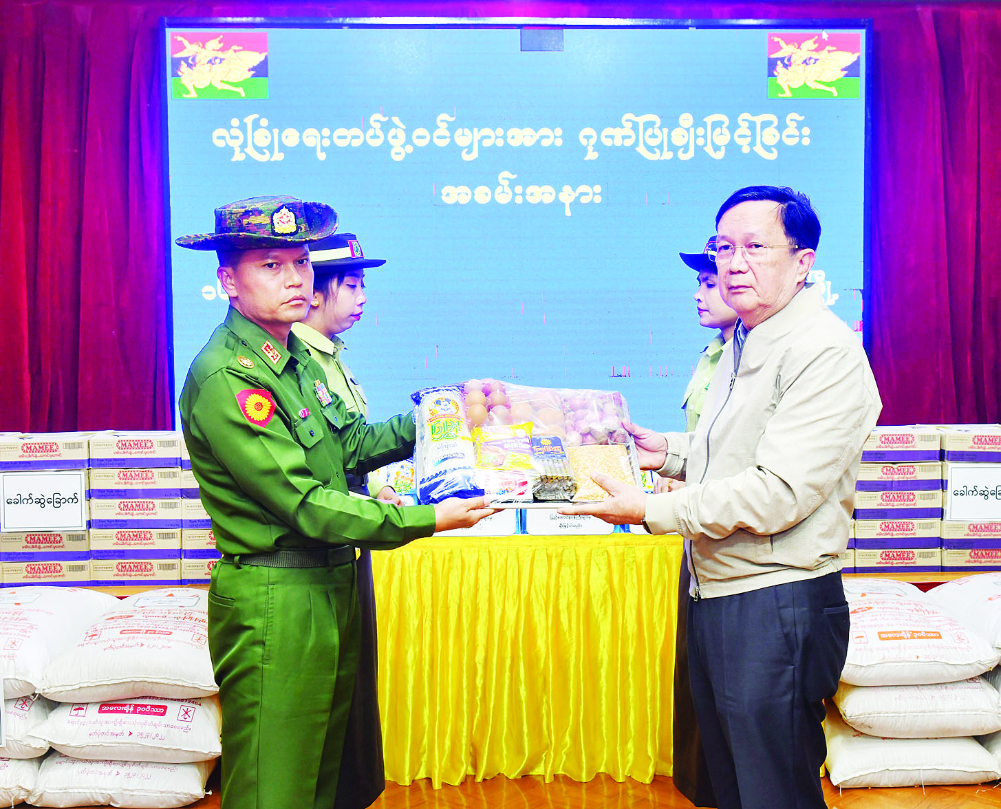 ထို့နောက် အမှုဆောင်ချုပ်က နိုင်ငံတော်ကာကွယ်ရေးနှင့် လုခြုံရေး တာဝန်ထမ်းဆောင်လျက် ရှိသော တပ်ဖွဲ့ဝင်များအတွက် စားသောက်ဖွယ်ရာများကို ချီးမြှင့်ထောက်ပံ့ပေးအပ်သည်။