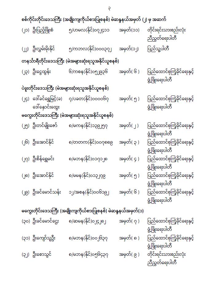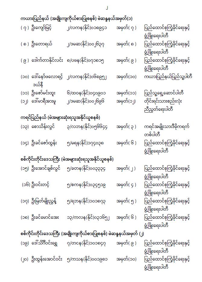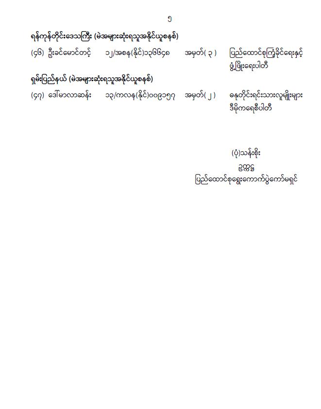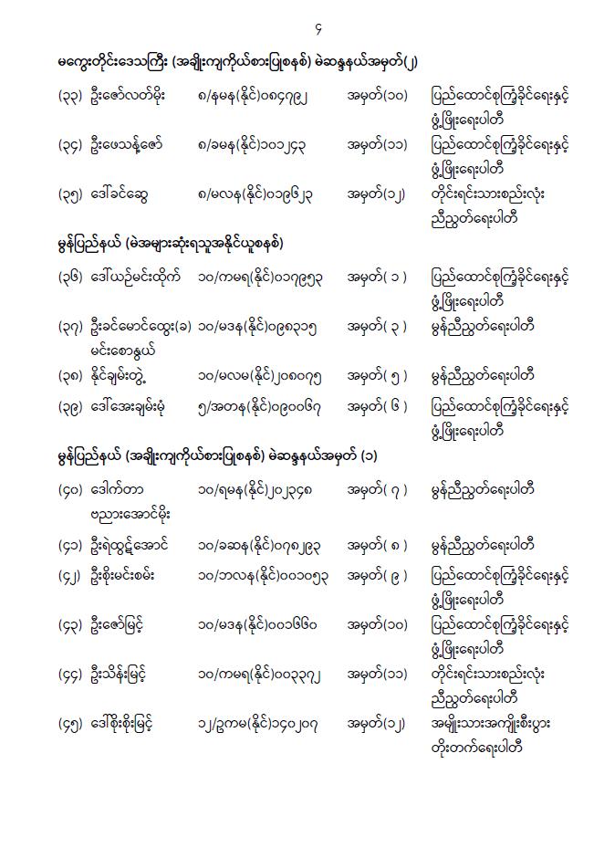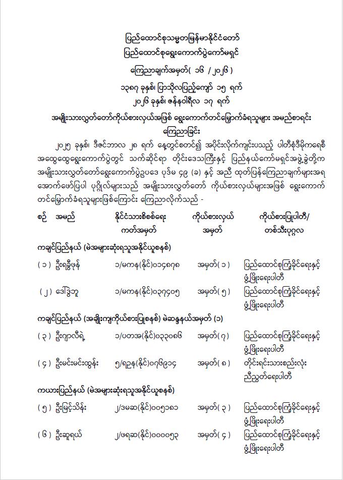 အမျိုးသားလွှတ်တော်ကိုယ်စားလှယ်အဖြစ် ရွေးကောက်တင်မြှောက်ခံရသူများ အမည်စာရင်း ကြေညာခြင်း