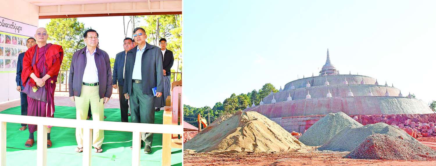 ထို့နောက် နိုင်ငံတော်ယာယီသမ္မတ နိုင်ငံတော်လုံခြုံရေးနှင့်အေးချမ်းသာယာရေးကော်မရှင်ဥက္ကဋ္ဌသည် စေတီတော်ကြီး တည်ဆောက်ရေးလုပ်ငန်းခွင်အတွင်း လှည့်လည်ကြည့်ရှုပြီး လိုအပ်သည်များ လမ်းညွှန်မှာကြားသည်။