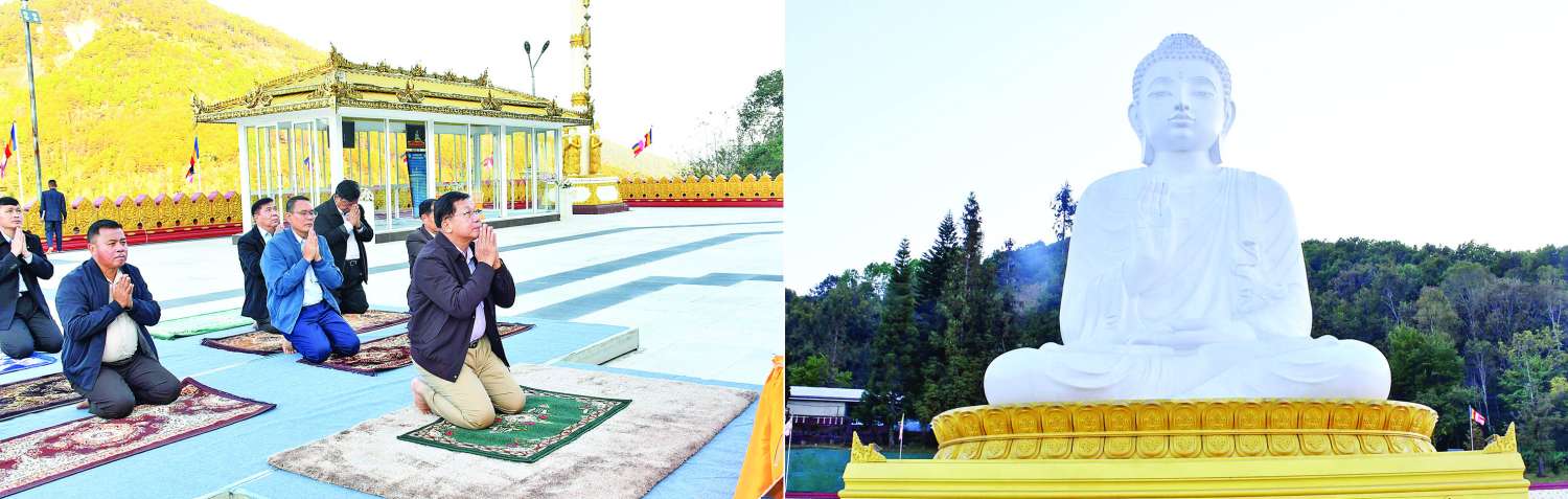 ထို့နောက် နိုင်ငံတော်ယာယီသမ္မတ နိုင်ငံတော်လုံခြုံရေးနှင့်အေးချမ်းသာယာရေးကော်မရှင်ဥက္ကဋ္ဌနှင့် အဖွဲ့ဝင်များသည် ညပိုင်းတွင် ကျိုင်းတုံမြို့ ကျက်သရေဆောင် မဟာမြတ်မုနိဘုရားကြီးသို့ သွားရောက်ဖူးမြော်ကြရာ ဂေါပကအဖွဲ့ဝင်များက ကြိုဆိုနှုတ်ဆက်ကြသည်။ ယင်းနောက် နိုင်ငံတော်ယာယီသမ္မတ နိုင်ငံတော်လုံခြုံရေးနှင့်အေးချမ်းသာယာရေးကော်မရှင်ဥက္ကဋ္ဌက ဘုရားကြီးအား သောက်တော်ရေချမ်းနှင့် ပန်းမန်၊ ဆီမီးတို့ကို ကပ်လှူပူဇော်ပြီး ဖူးမြော်ကြည်ညိုသည်။