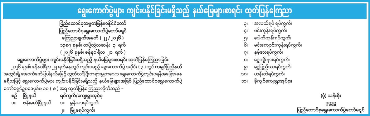 ရွေးကောက်ပွဲများ ကျင်းပနိုင်ခြင်းမရှိသည့် နယ်မြေများစာရင်း ထုတ်ပြန်ကြေညာ