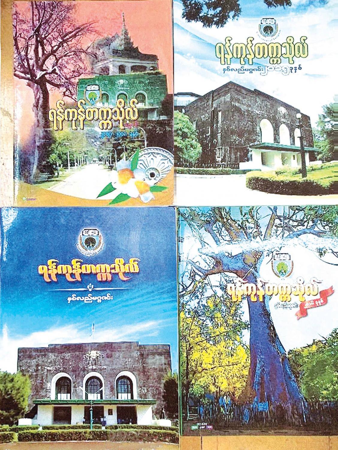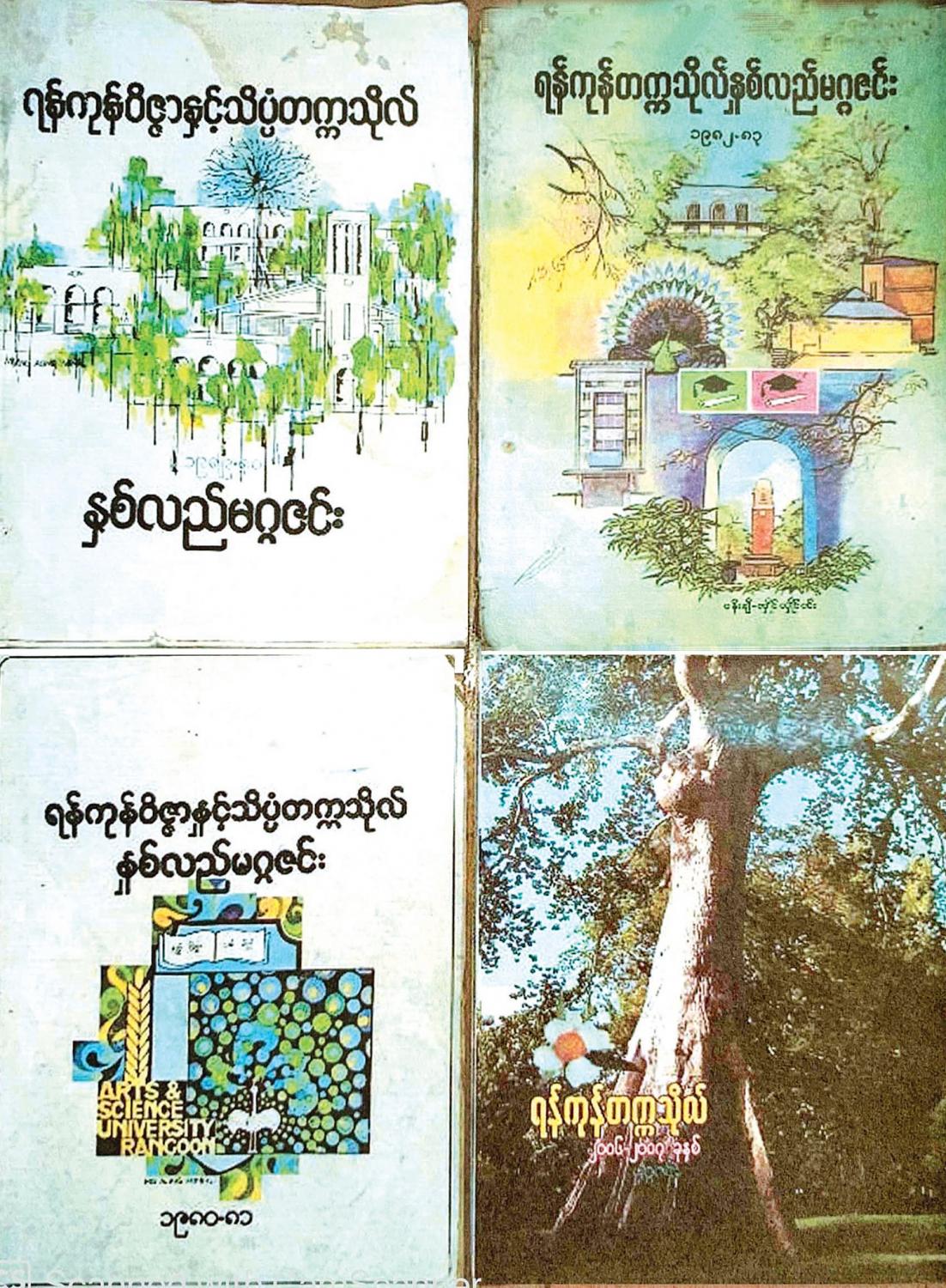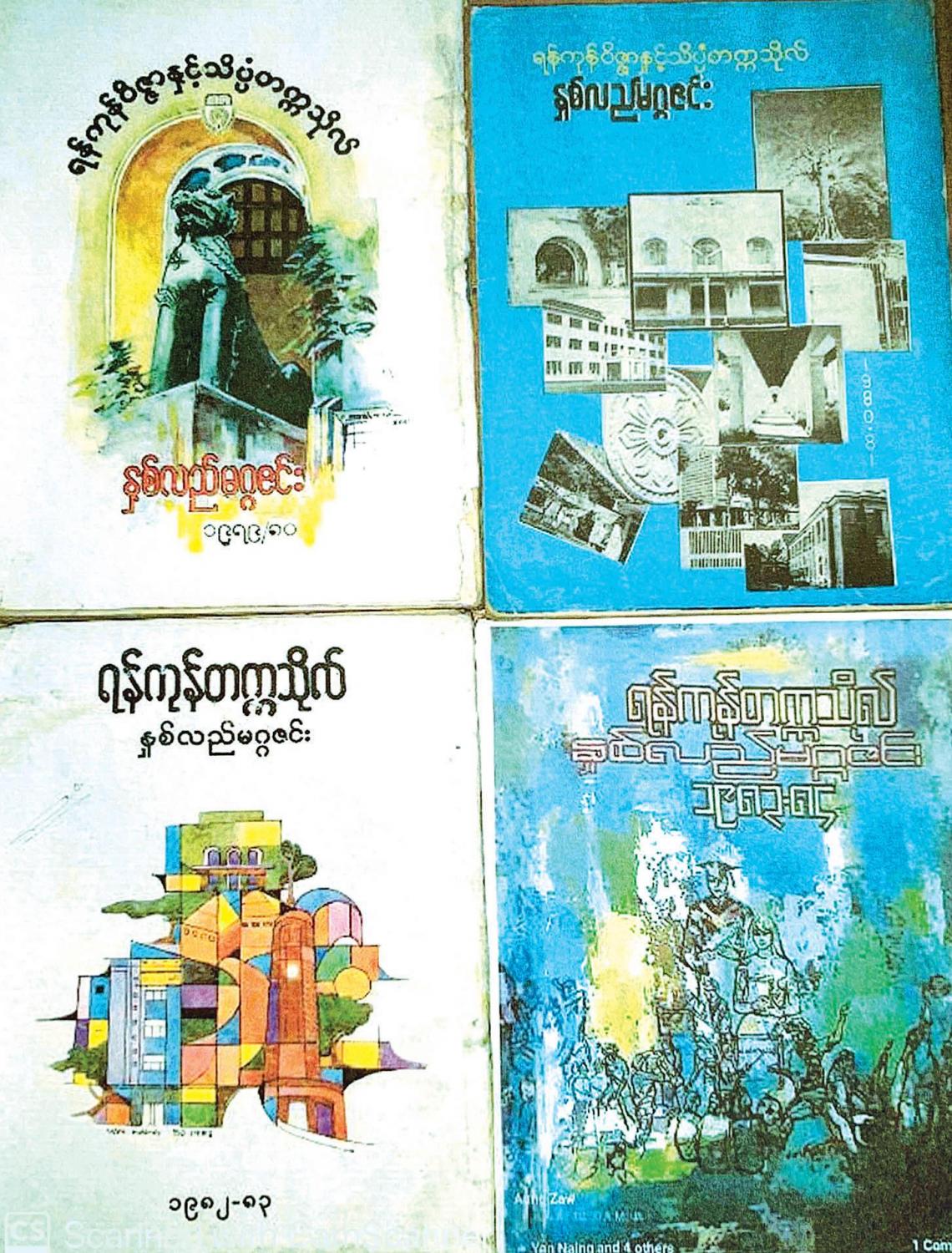 ရန်ကုန်တက္ကသိုလ်သည် ခရစ်နှစ် ၁၉၂၀ ပြည့်နှစ်တွင် ပေါ်ထွန်းလာခဲ့သည်။ တက္ကသိုလ်နှစ်လည်မဂ္ဂဇင်းကတော့ ဘယ်ခုနှစ်တွင် မွေးဖွားလာခဲ့သနည်း။ လက်လှမ်းမီသမျှ လေ့လာကြည့်ဖြစ်ပါသည်။ ဤသို့ လေ့လာသောအခါ အဆိုပါ စာစောင်သည် အမည်အမျိုးမျိုးပြောင်းခဲ့သည်ကိုတွေ့ရသည်။ နှစ်လည်မဂ္ဂဇင်းနှင့် အချင်းချင်းတည်မီရာ လည်းဖြစ်၊ သွေးသားလည်းတော်စပ်သည့် စာစောင် သုံးစောင်ရှိသည်။ ထိုစာစောင်တို့မှာ -