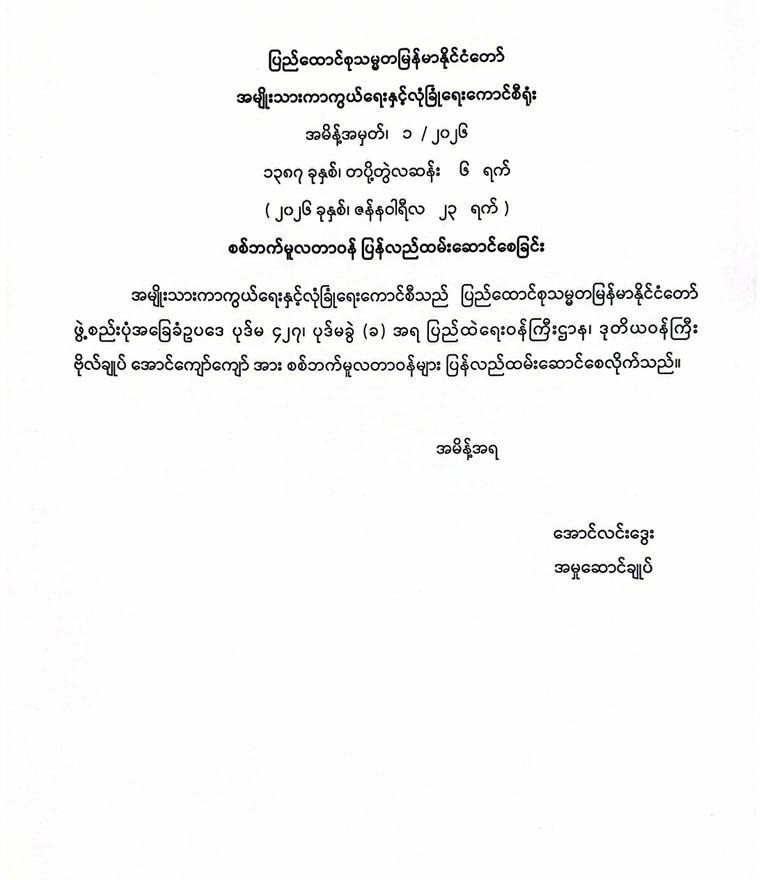 ဝန်ကြီးဌာန ကြေညာချက်များ