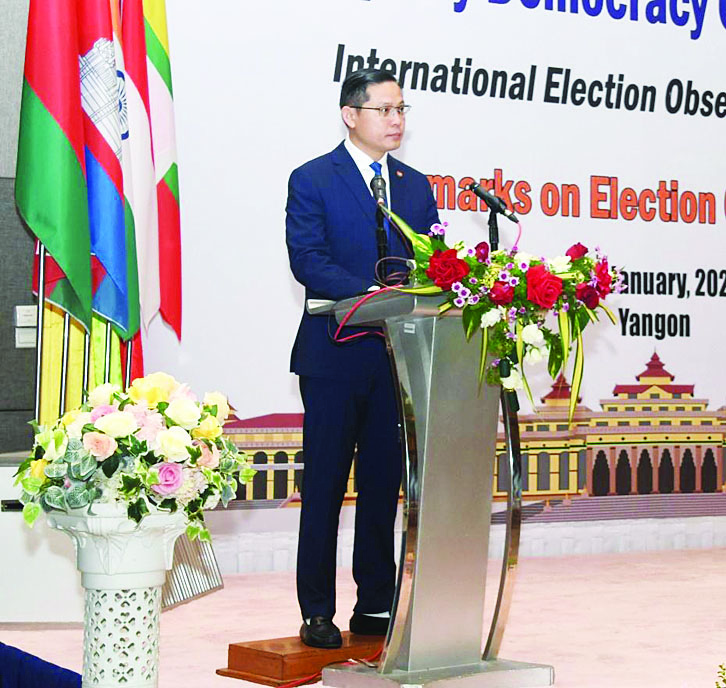 ရွေးကောက်ပွဲကျင်းပမှုဆိုတာဟာ အုပ်ချုပ်မှုလုပ်ငန်းစဉ်တစ်ခုသာ မဟုတ်ပါဘူးရှင်။ ရွေးကောက်ပွဲလုပ်ငန်းစဉ်ဆိုတာဟာ နိုင်ငံတစ်ခုရဲ့ဒီမိုကရေစီစံချိန်စံညွှန်းတွေနဲ့ ပြည်သူလူထုရဲ့ဆန္ဒ အပေါ်မှာ ကတိကဝတ်ပြုမှုကို အကောင်အထည် ဖော်ဆောင်ရွက်ပေးတာဖြစ်ပါတယ်။ ကျွန်မတို့ အနေနဲ့ အဲဒီရှုထောင့်ကနေ ပြောရမယ်ဆိုရင်တော့ ဒီကြီးမားတဲ့ အထွေထွေရွေးကောက်ပွဲမှာ ပြည်ထောင်စုရွေးကောက်ပွဲကော်မရှင်ရဲ့ စနစ်ကျစွာနဲ့ ကောင်းမွန်မှန်ကန်တဲ့ အရည်အချင်းတွေနဲ့ ခက်ခဲတဲ့အချိန်တွေ၊ ရှုပ်ထွေးတဲ့အချိန်တွေကြား ထဲကနေပြီး ရွေးကောက်ပွဲကို အောင်မြင်စွာ ကျင်းပ နိုင်ခဲ့တဲ့အတွက် ချီးကျူးဂုဏ်ယူလိုကြောင်း ပြောကြားလိုပါတယ်ရှင်။