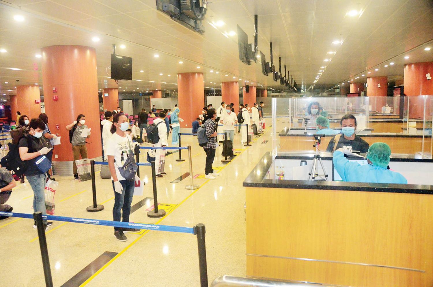 ၎င်းတို့ ရန်ကုန်အပြည်ပြည်ဆိုင်ရာလေဆိပ်သို့ ရောက်ရှိချိန်တွင် လူဝင်မှုကြီးကြပ်ရေး၊ ကျန်းမာရေးစိစစ်ရေး၊ သီးသန့်စီစဉ်ပေးသည့်နေရာ /သတ်မှတ် ဟိုတယ်များ၌ အသွားအလာကန့်သတ်မှုခုနစ်ရက်နှင့် နေအိမ်တွင် အသွားအလာ ကန့်သတ်မှုခုနစ်ရက် နေထိုင်စေရေးတို့ကို အလုပ်သမား၊ လူဝင်မှုကြီးကြပ်ရေးနှင့် ပြည်သူ့အင်အားဝန်ကြီးဌာန၊ ကျန်းမာရေးနှင့်အားကစားဝန်ကြီးဌာနနှင့် ရန်ကုန်တိုင်းဒေသကြီးအစိုးရအဖွဲ့ တို့က သက်ဆိုင်ရာအခန်းကဏ္ဍအလိုက် တာဝန်ယူ ဆောင်ရွက်ပေးကြသည်။