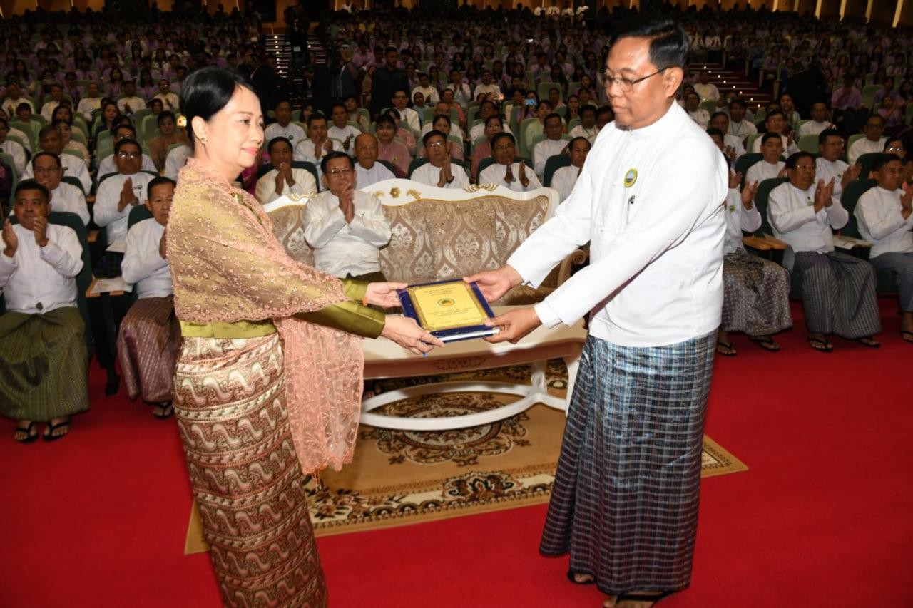 Naypyitaw State Academy ၏ ဘွဲ့နှင်းသဘင်ခန်းမကြီးကို ယခုကဲ့သို့ ပြခန်းများ၊ ပျော်ပွဲရွှင်ပွဲများဖြင့် စည်ကားသိုက်မြိုက်စွာ ဖွင့်လှစ်ပေးနိုင်သည့်အတွက် လှိုက်လှိုက်လှဲလှဲ ဝမ်းမြောက်ဂုဏ်ယူပါကြောင်း၊ ယခုဘွဲ့နှင်းသဘင် ပရိဝုဏ်မှ နှစ်စဉ်နှစ်ဆက် ပေါ်ထွက်လာကြမည့် ဘွဲ့ရမောင်မယ်များအနေဖြင့် နိုင်ငံတော်က အားကိုးအားထားပြုနိုင်ပြီး နိုင်ငံနှင့်လူမျိုးအကျိုးကို သယ်ပိုးနိုင်မည့် လူတော်လူကောင်းများဖြစ်လာကြမည်ဟု ယုံကြည်မျှော်လင့်ပါကြောင်း၊ မြန်မာနိုင်ငံ၏ ပိုမိုကောင်းမွန်သည့် အနာဂတ်လူ့ဘောင်ကို တည်ဆောက်နိုင်ရေး ကမ္ဘာနှင့်ရင်ပေါင်တန်းနိုင်မည့် အသိပညာအတတ်ပညာနှင့်ပြည့်စုံသည့်၊ နှလုံးရည်ပြည့်ဝသည့် ပညာတတ်လူရည်ချွန် လူရည်မွန်များကို ယခုဘွဲ့နှင်းသဘင်ခန်းမကြီးမှ ဆက်လက်မွေးထုတ်ပေးနိုင်ပါစေဟု ဆန္ဒပြုပါကြောင်းဖြင့် ပြောကြားသည်။