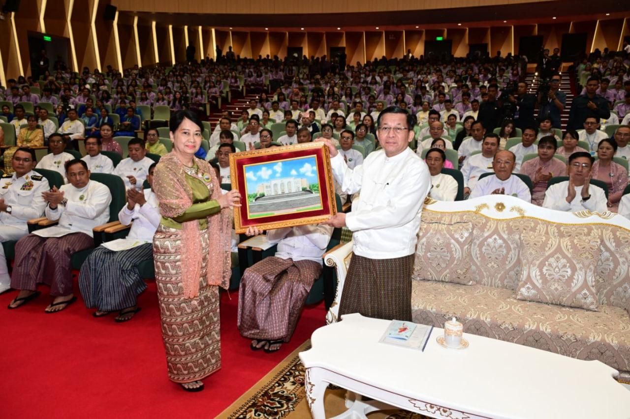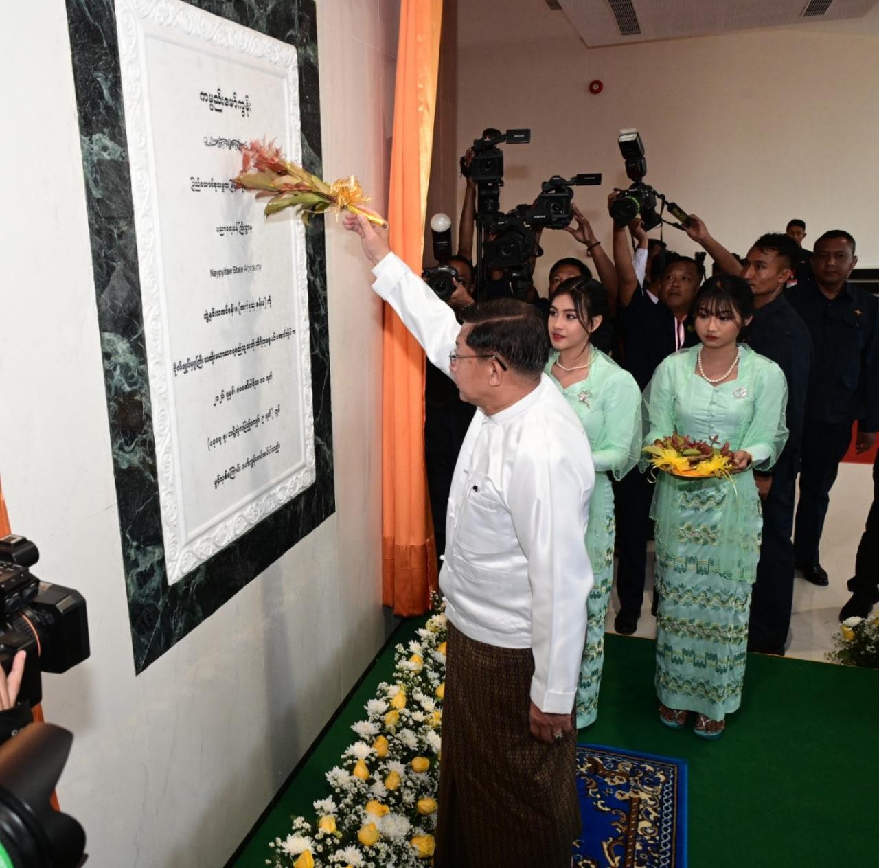 Naypyitaw State Academy ဘွဲ့နှင်းသဘင်ခန်းမ (ဘက်စုံသုံးခန်းမ) ဖွင့်ပွဲအခမ်းအနားကျင်းပ၊ ပြည်ထောင်စုသမ္မတမြန်မာနိုင်ငံတော် ယာယီသမ္မတ နိုင်ငံတော်လုံခြုံရေးနှင့်အေးချမ်းသာယာရေးကော်မရှင်ဥက္ကဋ္ဌ ဗိုလ်ချုပ်မှူးကြီး မင်းအောင်လှိုင် တက်ရောက်ဖွင့်လှစ်ပေး