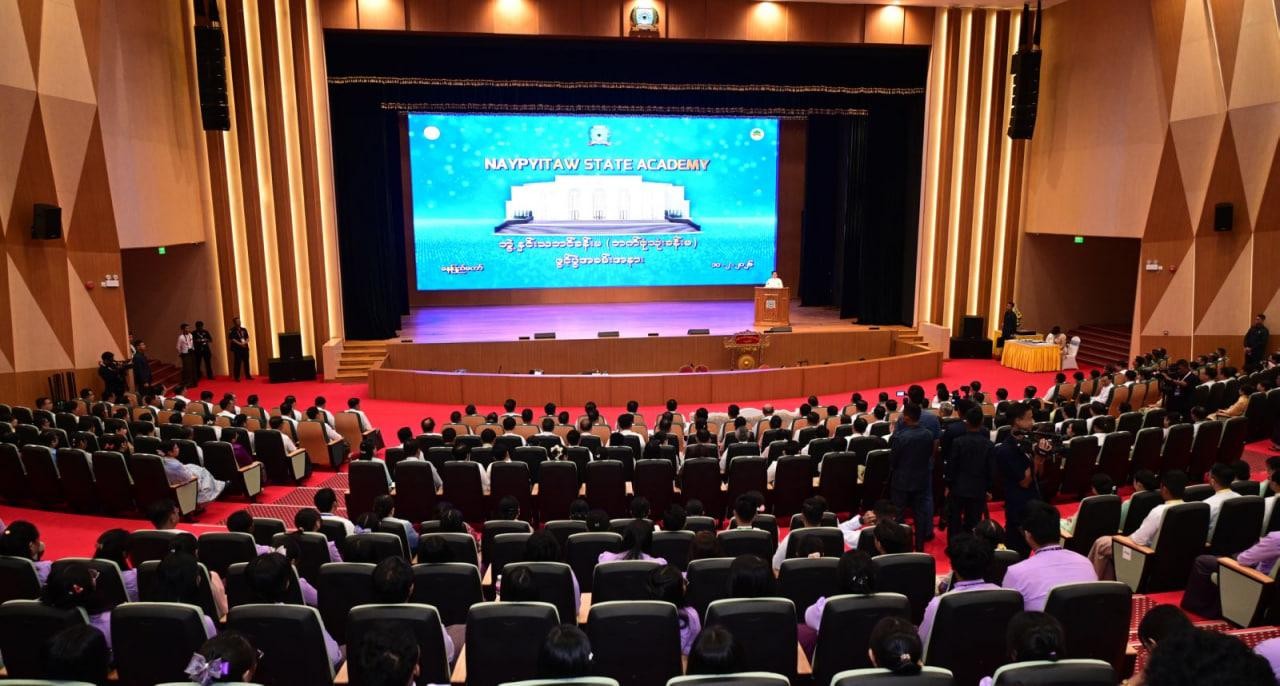 ယနေ့တွင် ထိုကဲ့သို့သော အသိပညာ၊ အတတ်ပညာနှင့် ပြည့်စုံပြီး ပညာပြည့်ဝနှလုံးလှသည့် ဘွဲ့ရပညာတတ် နိုင်ငံ့သားကောင်းရတနာမွန်များ မွေးထုတ်ပေးရာ Naypyitaw State Academy ၏ ဘွဲ့နှင်းသဘင်ခန်းမ (ဘက်စုံသုံးခန်းမ) ကို အခမ်းအနားဖြင့် ဖွင့်လှစ်ပေးခဲ့ပြီးဖြစ်ကြောင်း။