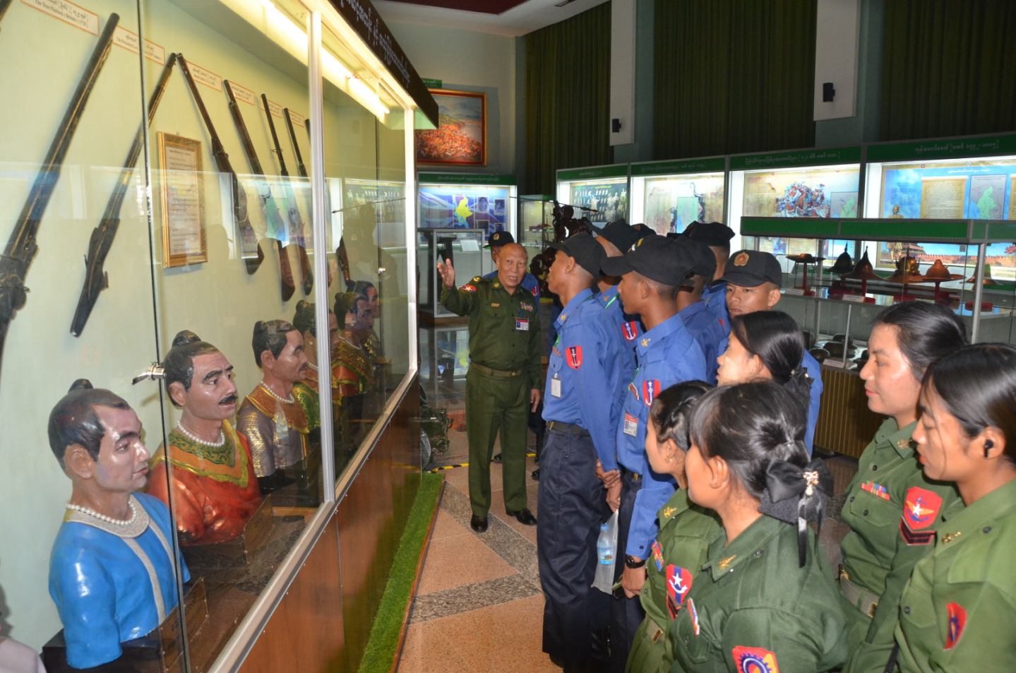 ဆက်လက်၍ မွန်းလွဲပိုင်းတွင် လေ့လာရေးအဖွဲ့များသည် တပ်မတော်စစ်သမိုင်းပြတိုက် (နေပြည်တော်) ရှိ ခေတ်အဆက်ဆက်မှ အသုံးပြုခဲ့သော သမိုင်းဝင်လက်နက်များနှင့် အသုံးအဆောင်ပစ္စည်းပြကွက်များကို သွားရောက်လေ့လာကြပြီး တာဝန်ရှိသူများက လိုက်လံရှင်းလင်းပြသသည်။