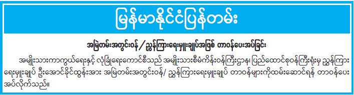 စက္ကူ နှင့် ပုံနှိပ်ရေးပစ္စည်းများဝယ်ယူရန် အိတ်ဖွင့်တင်ဒါခေါ်ယူခြင်း