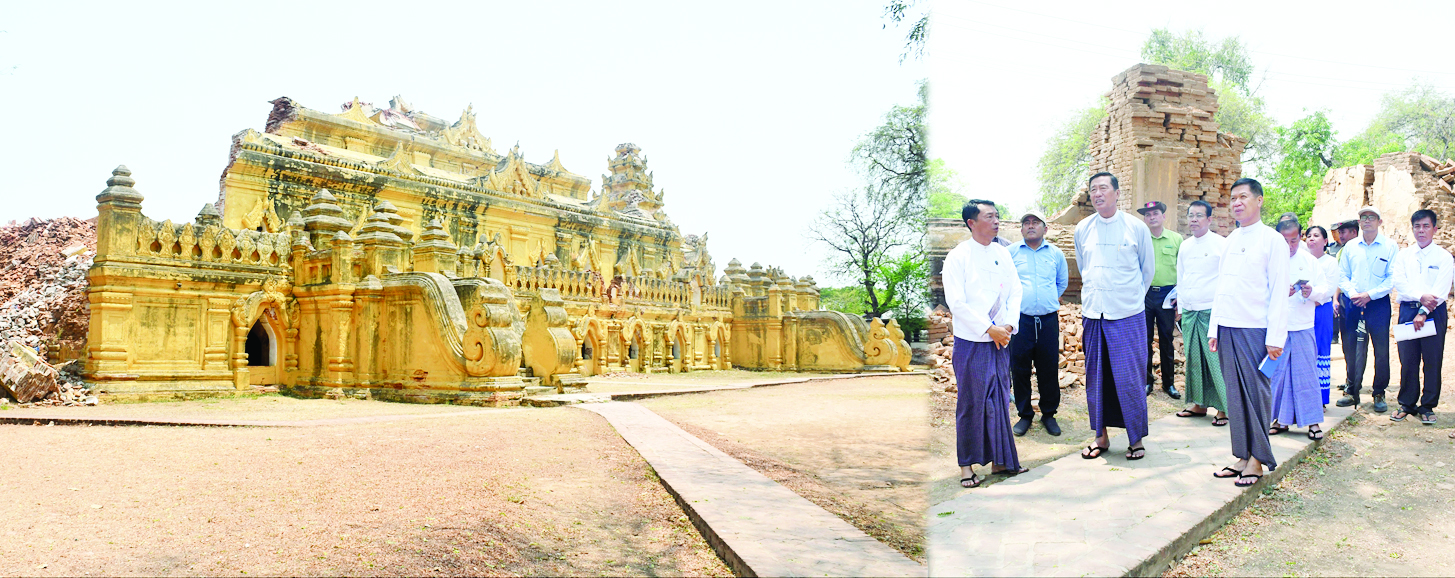 ထို့နောက် ပြည်ထောင်စုဝန်ကြီးက အတွင်းမှထောက်တိုင်များ၊ အပေါ်ဆင့်များ ထပ်မံအားဖြည့်ထည့်ရန်၊ နောင်ငလျင်များဖြစ်ပေါ် လာနိုင်သည်ကို ကြိုတင်ရည်မှန်း၍ ပိုမိုကြံ့ခိုင်အောင် ဆောင်ရွက်ရန်၊ အင်ဂျင်နီယာများ နေ့စဉ်အမြဲကြီးကြပ်၍ အားနည်းချက် မရှိစေရေး စီမံဆောင်ရွက်ရန်၊ ပြုပြင်ပြီးစီးပါက ပြန်လည်ခင်းကျင်းမှုကိုပါ ကြိုတင်လျာထား ဆောင်ရွက်ရန်၊ အလားတူအင်းဝဒေသရှိ ငလျင်ဒဏ်ခံဘုရားများ ပြုပြင်ရာတွင် ပစ္စည်းလိုအပ်ချက်များရှိပါက တင်ပြရန်နှင့် ဝန်ကြီးဌာနချင်း ညှိနှိုင်းဆောင်ရွက်ပေးမည်ဖြစ်ကြောင်း မှာကြားသည်။