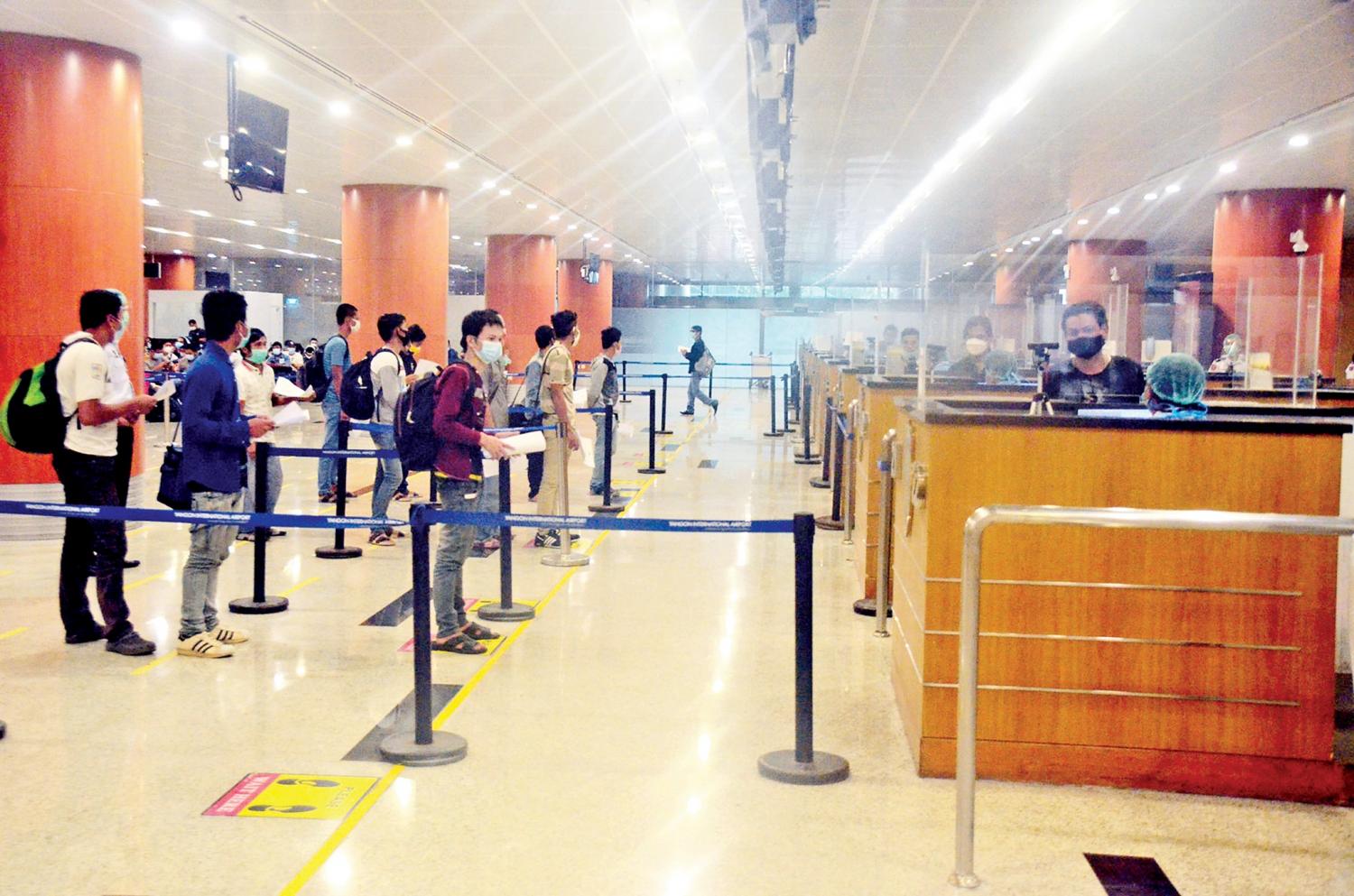 ၎င်းတို့ ရန်ကုန်အပြည်ပြည်ဆိုင်ရာလေဆိပ်သို့ ရောက်ရှိချိန်တွင် လူဝင်မှုကြီးကြပ်ရေး၊ ကျန်းမာရေးစစ်ဆေးရေး၊ သီးသန့်စီစဉ်ပေးသည့်နေရာ/သတ်မှတ်ဟိုတယ်များ၌ အသွား အလာကန့်သတ်မှု ခုနစ်ရက်နှင့် နေအိမ်တွင် အသွားအလာကန့်သတ်မှု ခုနစ်ရက် နေထိုင် စေရေးတို့ကို အလုပ်သမား၊ လူဝင်မှုကြီးကြပ်ရေးနှင့် ပြည်သူ့အင်အားဝန်ကြီးဌာန၊ ကျန်းမာရေးနှင့် အားကစားဝန်ကြီးဌာနနှင့် ရန်ကုန်တိုင်းဒေသကြီးအစိုးရအဖွဲ့တို့က သက်ဆိုင်ရာအခန်းကဏ္ဍအလိုက် တာဝန်ယူဆောင်ရွက်ပေးခဲ့ကြသည်။