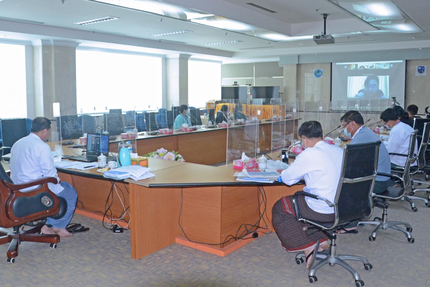 အစည်းအဝေးတွင် ပြန်ကြားရေးဝန်ကြီးဌာန၊ မြန်မာအသံနှင့်ရုပ်မြင်သံကြား ညွှန်ကြား ရေးမှူးချုပ် ဦးရဲနိုင်က ကိုဗစ်-၁၉ ကပ်ရောဂါ ဖြစ်ပွားနေချိန် သွားလာမှု ကန့်သတ်ချက်များ ဆောင်ရွက်နေစဉ်ကာလအတွင်း မိသားစုအလိုက် ဉာဏ်စမ်းပဟေဠိ ပြိုင်ပွဲများ ကျင်းပပေးရန် လမ်းညွှန်မှုအရသုတဝေဖြာသီရိဂေဟာ(Family Quiz)” ခေါင်းစဉ် ဖြင့် အသိပညာပေးဆိုင်ရာ အစီအစဉ်ကျင်းပမည့် အစီအမံကို လျာထားတင်ပြရာ အစည်းအဝေးသို့ တက်ရောက်လာ ကြသည့် စီမံကိန်း၊ ဘဏ္ဍာရေးနှင့်စက်မှုဝန်ကြီးဌာန၊ ရင်းနှီးမြှုပ်နှံမှုနှင့် နိုင်ငံခြားစီးပွား ဆက်သွယ်ရေးဝန်ကြီးဌာန၊ စီးပွားရေးနှင့် ကူးသန်းရောင်းဝယ်ရေးဝန်ကြီးဌာန၊ ပညာရေးဝန်ကြီး ဌာန၊ ကျန်းမာရေးနှင့်အားကစားဝန်ကြီးဌာနတို့မှ ညွှန်ကြားရေးမှူးချုပ်နှင့် ဒုတိယညွှန်ကြား ရေးမှူးချုပ်တို့က ဝိုင်းဝန်းအကြံပြု ဆွေးနွေးကြသည်။
