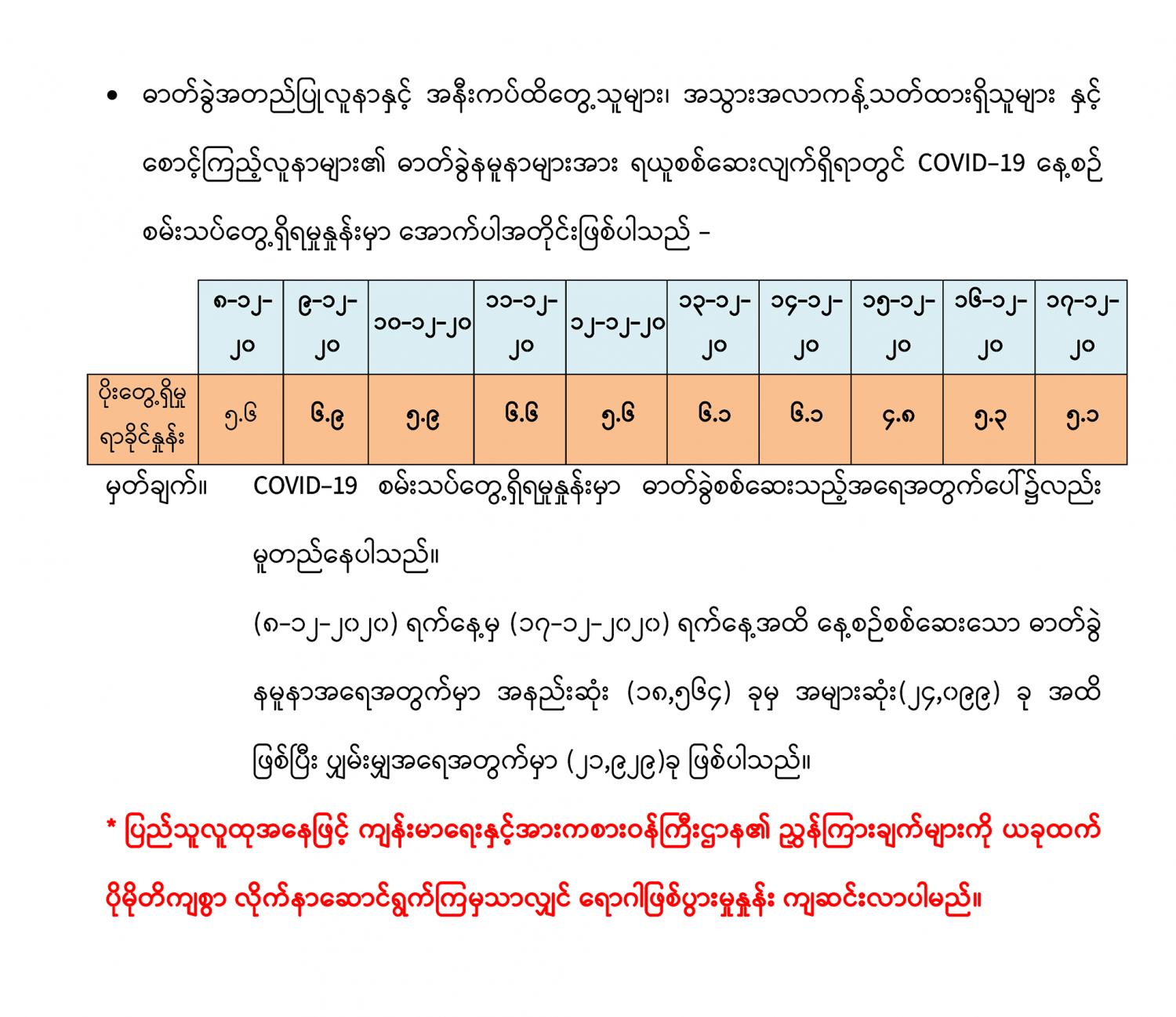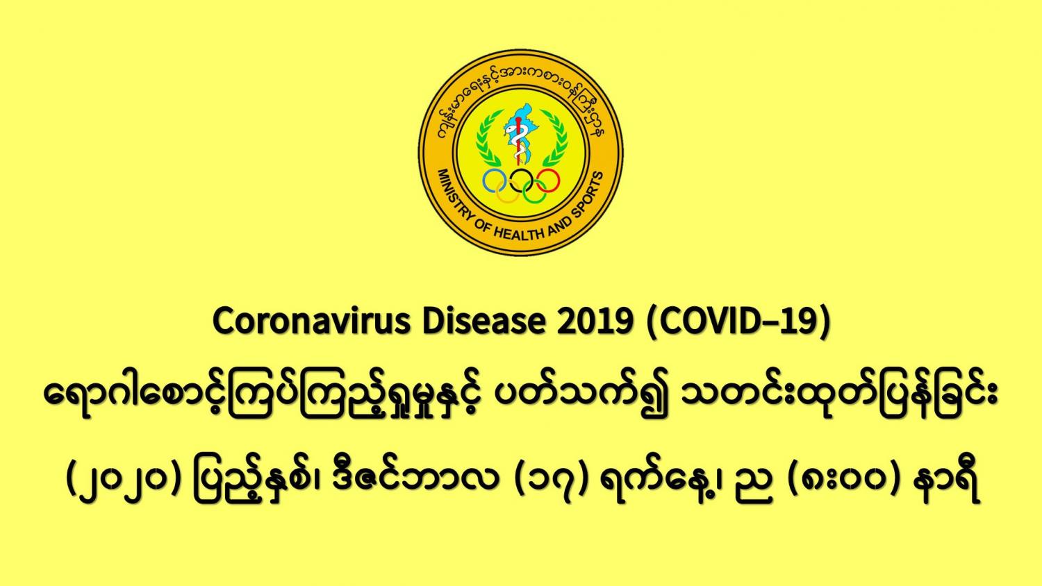 (၁၆-၁၂-၂၀၂၀) ရက်နေ့၊ ည (၈:၀၀) နာရီမှ (၁၇-၁၂-၂၀၂၀) ရက်နေ့၊ ည (၈:၀၀) နာရီ အတွင်း ဓာတ်ခွဲနမူနာ စုစုပေါင်း (၂၃,၁၈၈) ခုအား စစ်ဆေးပြီးစီးခဲ့ရာ COVID-19 ရောဂါ ဓာတ်ခွဲအတည်ပြု လူနာသစ် (၁,၁၈၂) ဦး တွေ့ရှိရပါသည်။