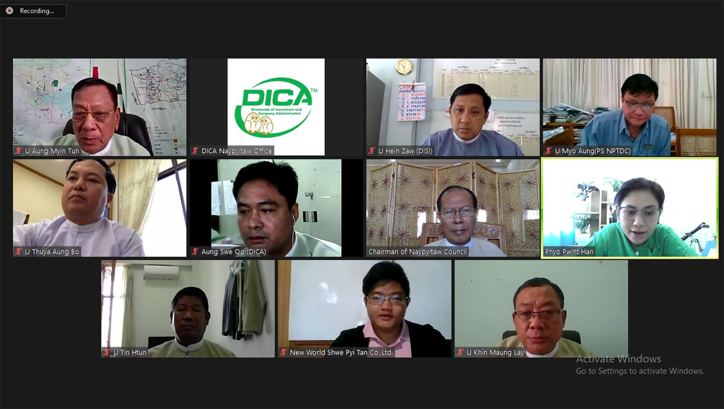နေပြည်တော်ကောင်စီဥက္ကဋ္ဌဒေါက်တာမျိုးအောင် နေပြည်တော်ကောင်စီရင်းနှီးမြှုပ်နှံမှုကော်မတီ အစည်းအဝေးအား Video Conferencing စနစ်ဖြင့် တက်ရောက်