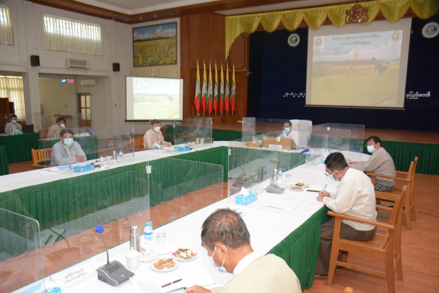 အစည်းအဝေးတွင် စိုက်ပျိုးရေး၊မွေးမြူရေးနှင့် ဆည်မြောင်းဝန်ကြီးဌာန ပြည်ထောင်စုဝန်ကြီး ဒေါက်တာအောင်သူက လယ်ယာမြေကို ခွင့်ပြုချက်မရမီ အခြားနည်းသုံးစွဲခွင့် ကြိုတင် ဆောင်ရွက်ခြင်း မရှိစေရေးနှင့် ခွင့်ပြုချက်မရရှိမီ အခြားနည်းသုံးစွဲခြင်း ကိစ္စရပ်များ လုံးဝ ရပ်တန့်သွားအောင် ဆောင်ရွက်ရန် လိုအပ်ကြောင်း၊ ယနေ့ ပြည်သူလူထုအကြား ရေပန်းစားနေသည့် လူမှုကွန်ယက် မီဒီယာလောကတွင် လယ်ယာမြေများကို အိမ်ရာခြံမြေ အဖြစ် အကွက်ရိုက် ရောင်းချမှု ကြော်ငြာများဖြင့် ဆောင်ရွက်နေသည်များကို တွေ့မြင်နေ ရပါကြောင်း၊ ယခုကဲ့သို့ လယ်ယာမြေများကို ခွင့်ပြုချက်မရှိပဲ စိုက်ပျိုးမြေလှပ်ထားခြင်း၊ အဆောက်အဦများ ခွင့်ပြုချက်မဲ့ ဆောက်လုပ်ခြင်းတို့ကို ဆောင်ရွက်ပါက လယ်ယာမြေ ဥပဒေအရ အရေးယူခြင်းခံရမည်ကို ပြည်သူလူထုအကြား သိရှိနားလည်စေရန်နှင့် ရောင်းမှား ဝယ်မှား မဖြစ်စေရေး အသိပညာပေးလုပ်ငန်းများ ဆောင်ရွက်ရန်လိုကြောင်း ပြောကြားသည်။