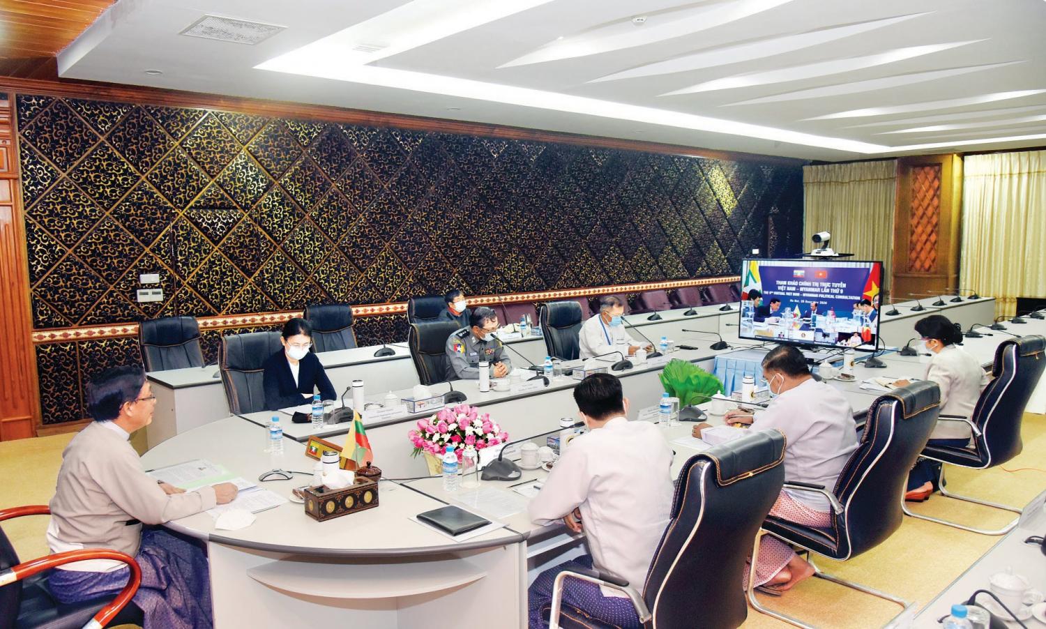(၉)ကြိမ်မြောက် မြန်မာ-ဗီယက်နမ် နိုင်ငံခြားရေးဝန်ကြီးဌာနများအကြား မူဝါဒရေးရာ ညှိနှိုင်းဆွေးနွေးပွဲကို ဗီဒီယိုကွန်ဖရင့်ဖြင့် ကျင်းပ