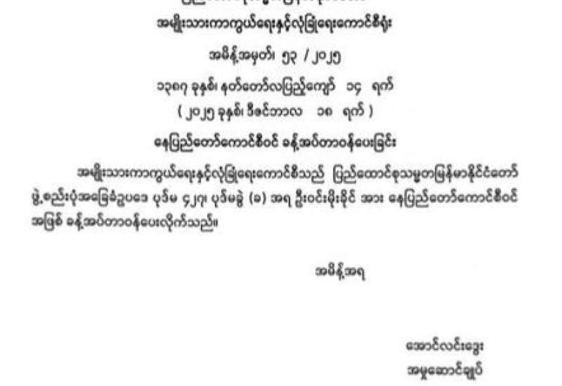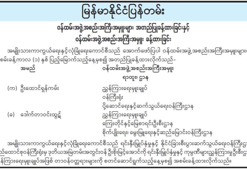 နေပြည်တော်ကောင်စီဝင် ခန့်အပ်တာဝန်ပေးခြင်း