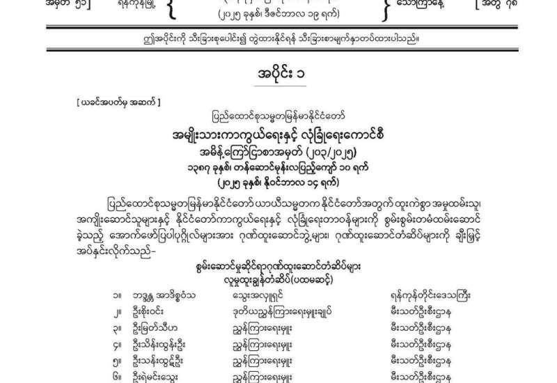 ပြည်ထောင်စုသမ္မတမြန်မာနိုင်ငံတော် ပြန်တမ်း အတွဲ (၇၈) အမှတ် (၅၁) အပိုင်း (၂) အား ဖတ်ရှုနိုင်ပါသည်-