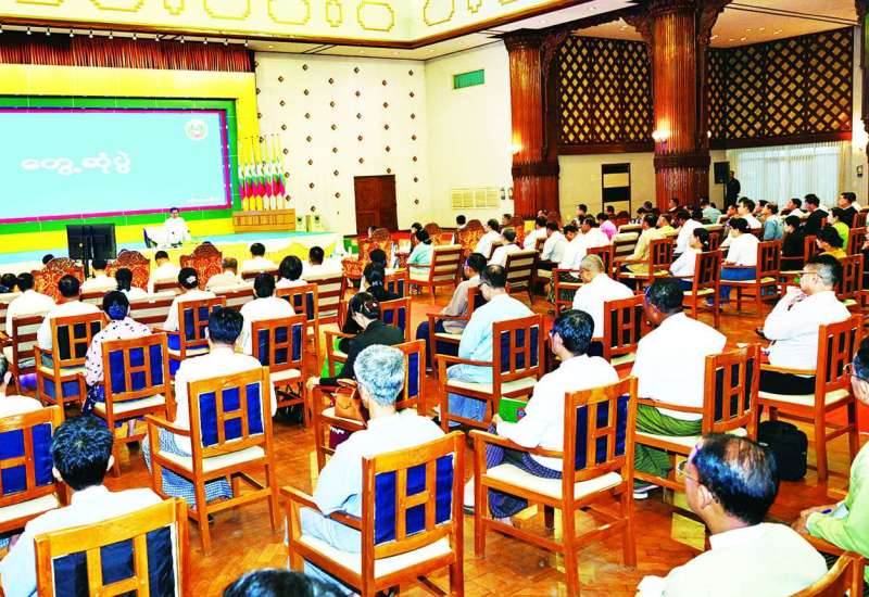 ပြည်ထောင်စုသမ္မတ မြန်မာနိုင်ငံတော်ယာယီသမ္မတ နိုင်ငံတော်လုံခြုံရေးနှင့်အေးချမ်းသာယာရေးကော်မရှင်ဥက္ကဋ္ဌ ဗိုလ်ချုပ်မှူးကြီး မင်းအောင်လှိုင်သည် ယနေ့မွန်းလွဲပိုင်းတွင် ရန်ကုန်တိုင်းဒေသကြီးအစိုးရအဖွဲ့ဝင်များ၊ တိုင်းဒေသကြီးနှင့် ခရိုင်အဆင့်ဌာနဆိုင်ရာ တာဝန်ရှိသူများအား တိုင်းဒေသကြီးအစိုးရအဖွဲ့ရုံး မင်္ဂလာခန်းမ၌တွေ့ဆုံ၍ ဒေသဖွံ့ဖြိုး တိုးတက်ရေးဆိုင်ရာများ ဆွေးနွေးပြောကြားသည်။