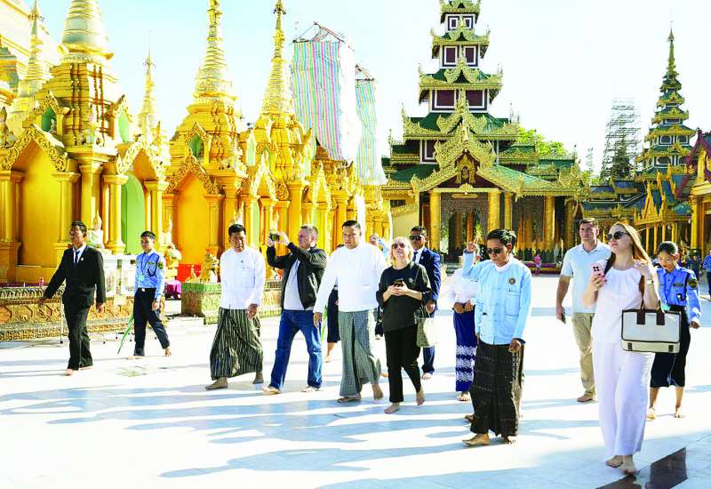 မြန်မာနိုင်ငံ၌ ရောက်ရှိနေသည့် ဘယ်လာရုစ်သမ္မတနိုင်ငံမှ စက်မှုဝန်ကြီး H. E. Mr. Andrei KUZNIATSOU၊ စိုက်ပျိုးရေးနှင့်စားနပ်ရိက္ခာဆိုင်ရာဝန်ကြီး H.E. Mr. Yury HORLAU ၊ ကျန်းမာရေးဝန်ကြီး H.E. Mr. Aliaksandr KHAJAYEU ၊ နိုင်ငံပိုင်အသေးစားစက်မှုလုပ်ငန်း “Bellegprom” ဥက္ကဋ္ဌ H.E. Ms. Nadzeya LAZAREVICH နှင့် ကိုယ်စားလှယ်အဖွဲ့သည် ရန်ကုန်မြို့ နိုင်ခြားရေးဝန်ကြီးဌာနမှ တာဝန်ရှိသူများနှင့်အတူ ယနေ့မွန်းလွဲပိုင်းတွင် ရွှေတိဂုံစေတီတော်မြတ်ကြီးသို့ရောက်ရှိရာ ရန်ကုန်တိုင်းဒေသကြီး လူမှုရေးဝန်ကြီး ဦးဌေးအောင်၊ ဘဏ္ဍာတော်ထိန်း ဂေါပကအဖွဲ့ များက ကြိုဆိုနှုတ်ဆက်ကြသည်။