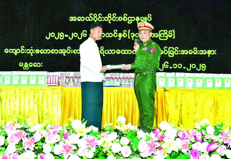 အလယ်ပိုင်းတိုင်းစစ်ဌာနချုပ်နှင့် အဆင့်မြင့်စစ်မှုထမ်းဟောင်းအိမ်ရာ(မန္တလေး)တို့ရှိ ၂၀၂၅-၂၀၂၆ ပညာသင်နှစ်တွင် တက်ရောက်ပညာ သင်ကြားလျက်ရှိသော ကျောင်းသား၊ ကျောင်းသူများအား (ဒုတိယ အကြိမ်) ကျောင်းသုံးဗလာစာအုပ်နှင့် စာရေးကိရိယာ ပေးအပ်ခြင်းကို ယနေ့မွန်းလွဲပိုင်းတွင် အလယ်ပိုင်းတိုင်းစစ်ဌာနချုပ် ရန်အောင်မြင်ခန်းမ၌ပြုလုပ်ရာ တိုင်းမှူးဗိုလ်မှူးချုပ် တင်မင်းလတ်နှင့် တာဝန်ရှိသူများ၊ အရာရှိ၊ စစ်သည် မိသားစုများ၊ စစ်မှုထမ်းဟောင်းအဖွဲ့ဝင်များ၊ ဆရာ၊ ဆရာမများနှင့် ကျောင်းသား ကျောင်းသူများ တက်ရောက်ကြသည်။