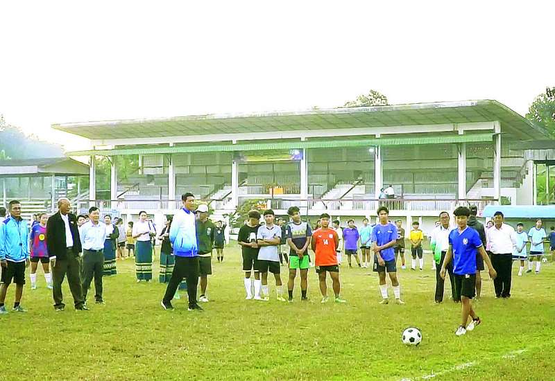 မြန်မာနိုင်ငံအိုလံပစ်ကော်မတီဥက္ကဋ္ဌ၊ အားကစားနှင့် လူငယ်ရေးရာဝန်ကြီးဌာနနှင့် ဟိုတယ်နှင့် ခရီးသွားလာရေးဝန်ကြီးဌာန ပြည်ထောင်စုဝန်ကြီး Jeng Phang နော်တောင်သည် ကချင်ပြည်နယ် အားကစားနှင့်ကာယပညာကော်မတီဥက္ကဋ္ဌ ပြည်နယ်လူမှုရေးရာဝန်ကြီး၊ တာဝန်ရှိသူများနှင့်အတူ ယနေ့ညနေပိုင်းတွင် ကချင်ပြည်နယ် အားကစားနှင့်ကာယပညာဦးစီးဌာန ပြည်နယ်အားကစားကွင်းအတွင်း နုန်းသဲဖြည့်ခြင်း၊ မြက်စိုက်ခြင်းနှင့် အားကစားကွင်း သန့်ရှင်းသာယာလှပရေးလုပ်ငန်းများကို ကြည့်ရှုစစ်ဆေးသည်။