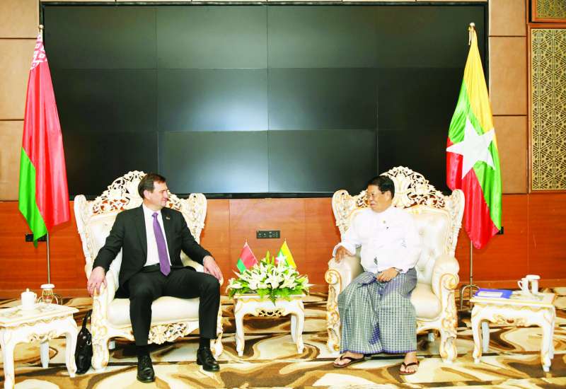 နိုင်ငံခြားရေးဝန်ကြီးဌာန ပြည်ထောင်စုဝန်ကြီး ဦးသန်းဆွေနှင့် ဘယ်လာရုစ်နိုင်ငံခြားရေးဝန်ကြီး မစ္စတာ မက်ဆင်ရူဇန်ကော့ဗ်တို့သည် ယနေ့မွန်းလွဲပိုင်းတွင် နေပြည်တော်ရှိ Jasmine Naypyitaw Hotel ၌ တွေ့ဆုံသည်။