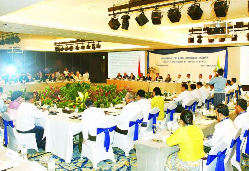 မြန်မာနှင့် ဘယ်လာရုစ်နှစ်နိုင်ငံအကြား စီးပွားရေးနှင့် ရင်းနှီးမြှုပ်နှံမှုလုပ်ငန်းများ တိုးမြှင့်ဆောင်ရွက်နိုင်ရေးအတွက် နှစ်နိုင်ငံကုန်သည်စက်မှုအသင်းများဖြစ်ကြသော UMFCCI နှင့် BelCCI တို့ပူးပေါင်း၍ မြန်မာ-ဘယ်လာရုစ် စီးပွားရေးဖိုရမ်ကို ယနေ့နံနက်ပိုင်းတွင် ရန်ကုန်မြို့ LOTTEE ဟိုတယ်၌ ကျင်းပသည်။