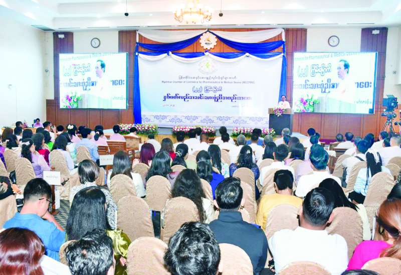 မြန်မာနိုင်ငံ ဆေးနှင့်ဆေးပစ္စည်းလုပ်ငန်းရှင်များအသင်း(၂၂) ကြိမ်မြောက်နှစ်ပတ်လည်အသင်း သားစုံညီအစည်းအဝေးကို ယနေ့နံနက်ပိုင်းတွင် ရန်ကုန်မြို့ UMFCCI Office Tower ရှိ မင်္ဂလာခန်းမ၌ ကျင်းပသည်။