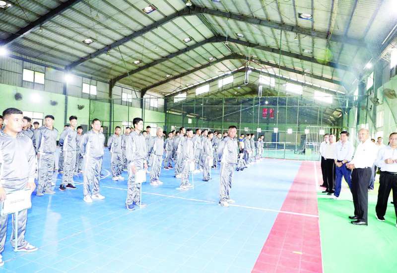မြန်မာနိုင်ငံအိုလံပစ်ကော်မတီဥက္ကဋ္ဌ အားကစားနှင့်လူငယ်ရေးရာဝန်ကြီးဌာနနှင့် ဟိုတယ်နှင့်ခရီးသွားလာရေးဝန်ကြီးဌာန ပြည်ထောင်စုဝန်ကြီး Jeng Phang နော်တောင်သည် အားကစားနှင့် လူငယ်ရေးရာဝန်ကြီးဌာန ဒုတိယဝန်ကြီး ဦးထိန်လင်း၊ အားကစားနှင့်ကာယပညာဦးစီးဌာန ညွှန်ကြားရေးမှူးချုပ်နှင့်အတူ ယမန်နေ့မွန်းလွဲပိုင်း၌ ရန်ကုန်မြို့ရှိဒဂုံမြို့သစ်မြောက်ပိုင်း မသန်စွမ်းအားကစား အဖွဲ့ချုပ်၌ (၁၃)ကြိမ်မြောက် အာဆီယံမသန်စွမ်း အားကစားပြိုင်ပွဲသို့ ဝင်ရောက်ယှဉ်ပြိုင်ရန်အတွက်စခန်းဝင်လေ့ကျင့်လျက်ရှိသည့် မသန်စွမ်းအားကစားအဖွဲ့အား ကြည့်ရှုစစ်ဆေးသည်။