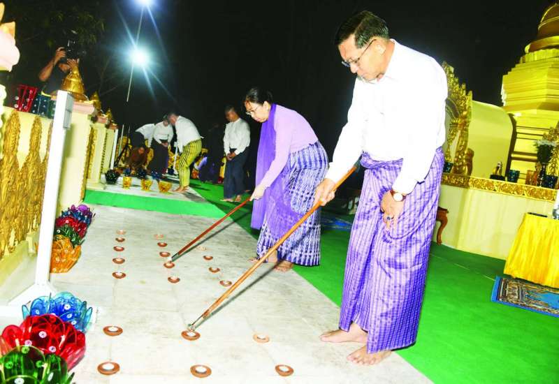 ပြည်ထောင်စုနယ်မြေ နေပြည်တော် ဒက္ခိဏသီရိမြို့နယ်ရှိ မာရဝိဇယဗုဒ္ဓရုပ်ပွားတော်မြတ်ကြီး ၂၀၂၅ ခုနှစ်၊ တန်ဆောင်တိုင်မီးထွန်းပွဲတော် မီးပုံးပျံလွှတ်တင်ပူဇော်ပြိုင်ပွဲနှင့် မသိုးရွှေကြာသင်္ကန်း ရက်လုပ်ပူဇော်ပြိုင်ပွဲ ဆုချီးမြှင့်ပွဲအခမ်းအနားကို ယနေ့ညပိုင်းတွင် မာရဝိဇယဗုဒ္ဓဥယျာဉ်တော် အတွင်းရှိ ရေပန်းရင်ပြင်တော်၌ စည်ကားသိုက်မြိုက်စွာဖြင့် ကျင်းပပြုလုပ်ရာ ပြည်ထောင်စုသမ္မတမြန်မာနိုင်ငံတော်ယာယီသမ္မတ နိုင်ငံတော်လုံခြုံရေးနှင့်အေးချမ်းသာယာရေးကော်မရှင်ဥက္ကဋ္ဌ ဗိုလ်ချုပ်မှူးကြီး မင်းအောင်လှိုင် တက်ရောက်ချီးမြှင့်သည်။